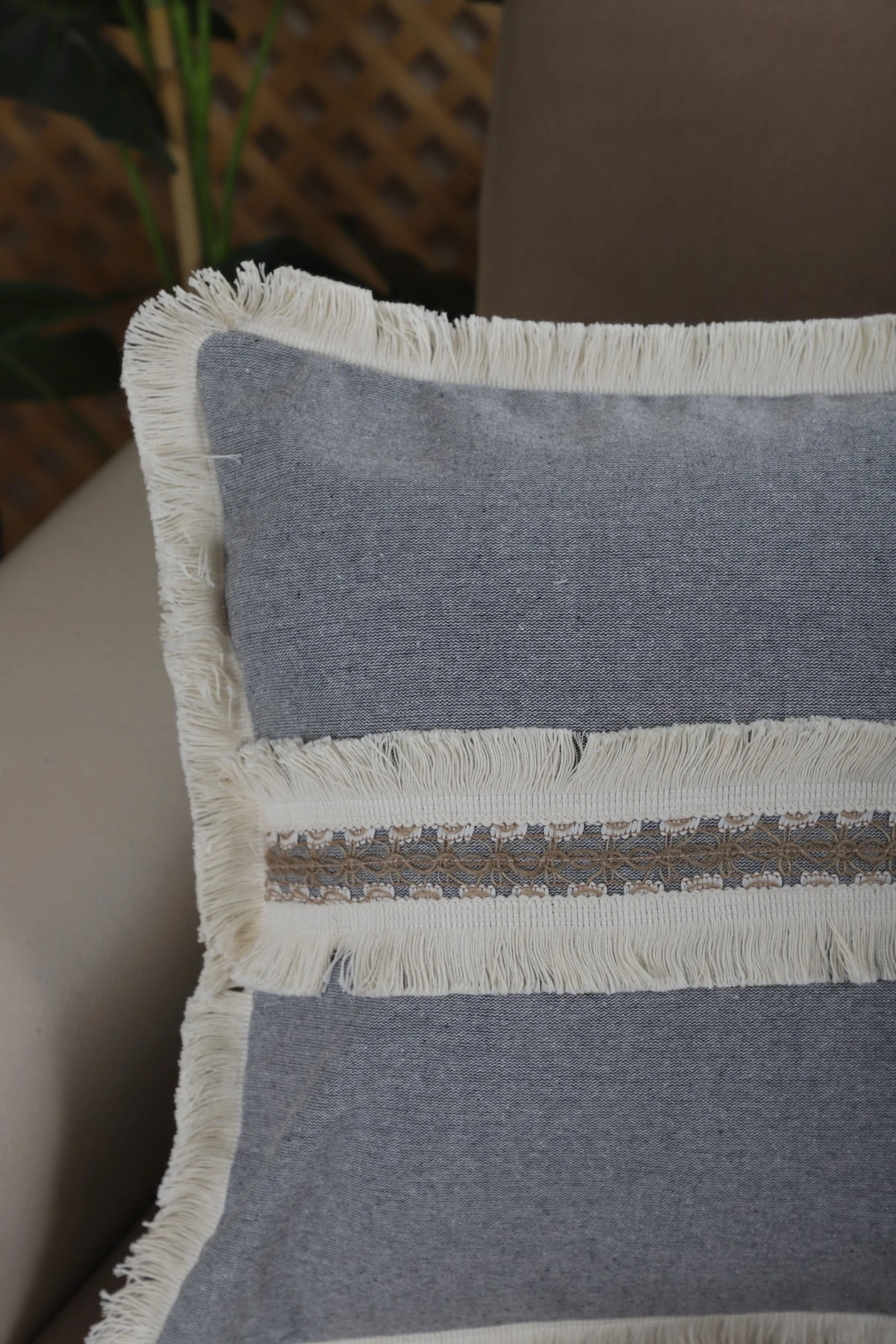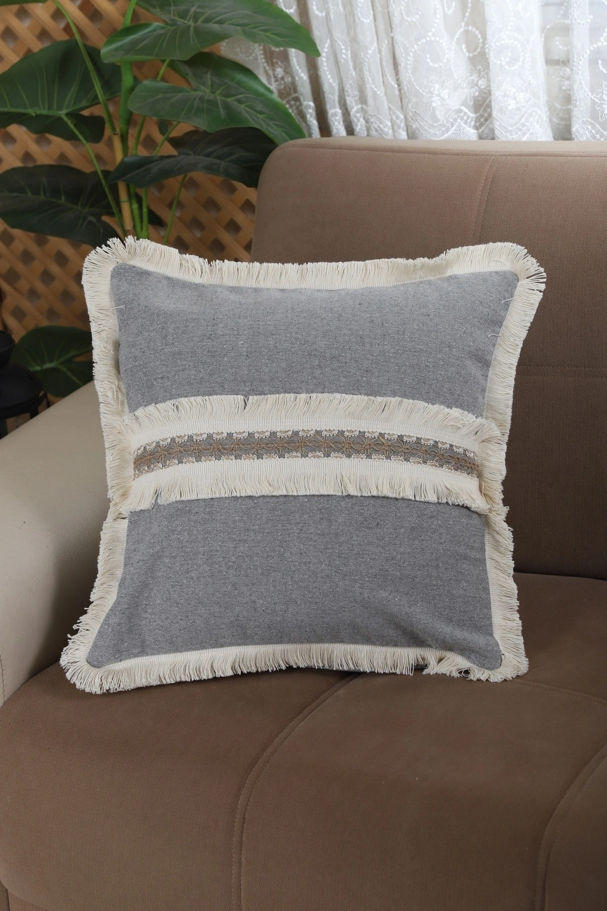 Antrasit Keten Jüt Dantelli Kırlent Kırlent Kılıfı 43 X 43