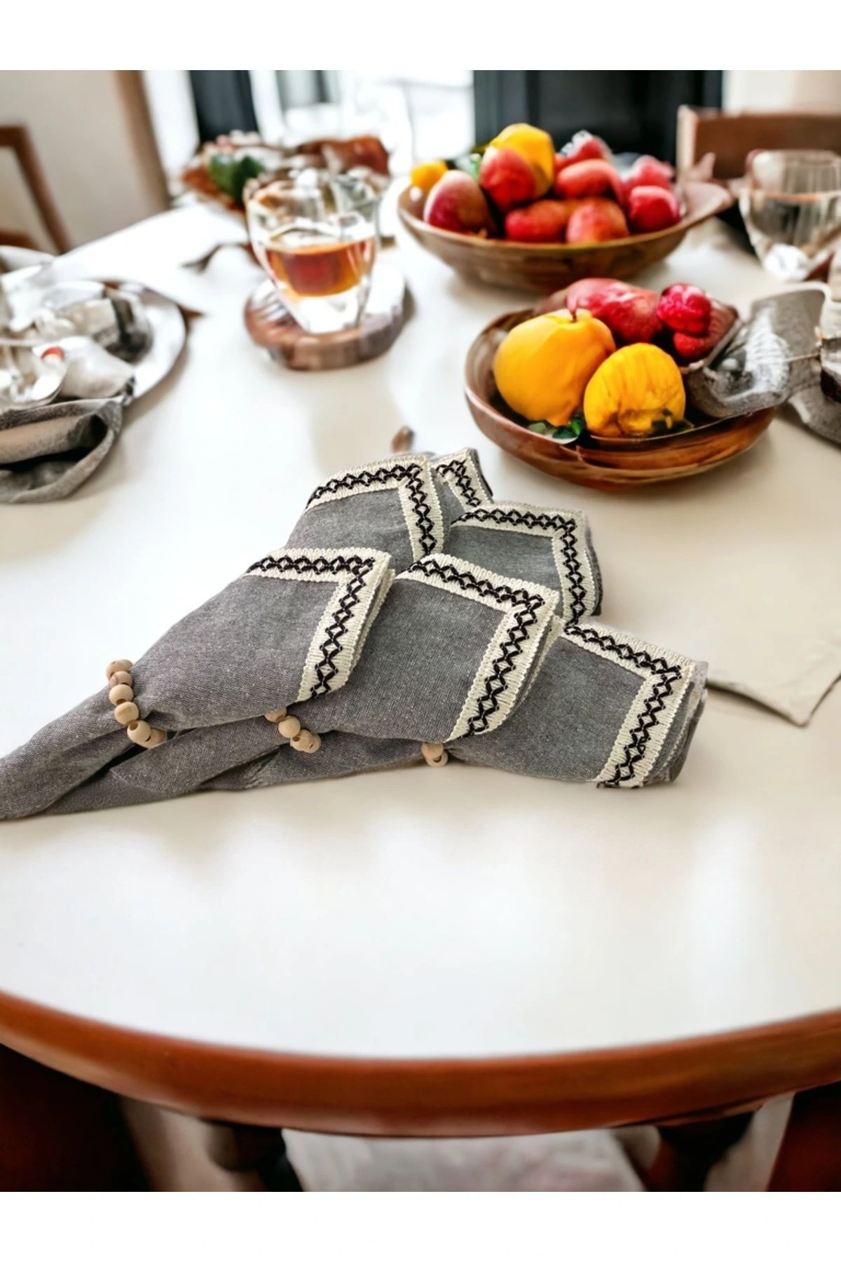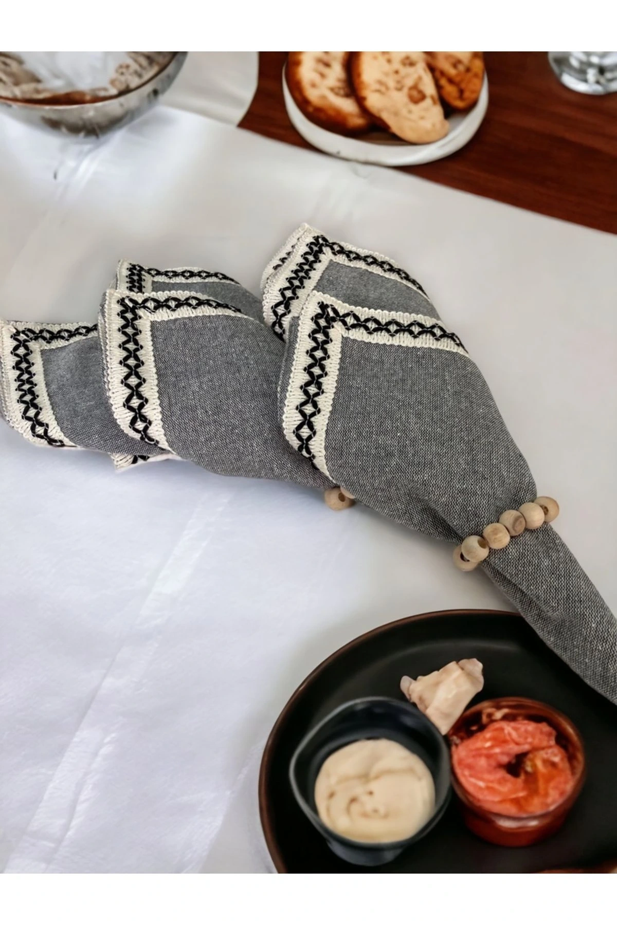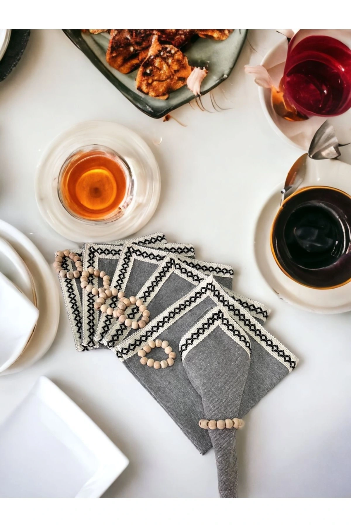 ANTRASİT Siyah Şeritli Peçete 40x40 TOKA HEDİYELİ 6LI