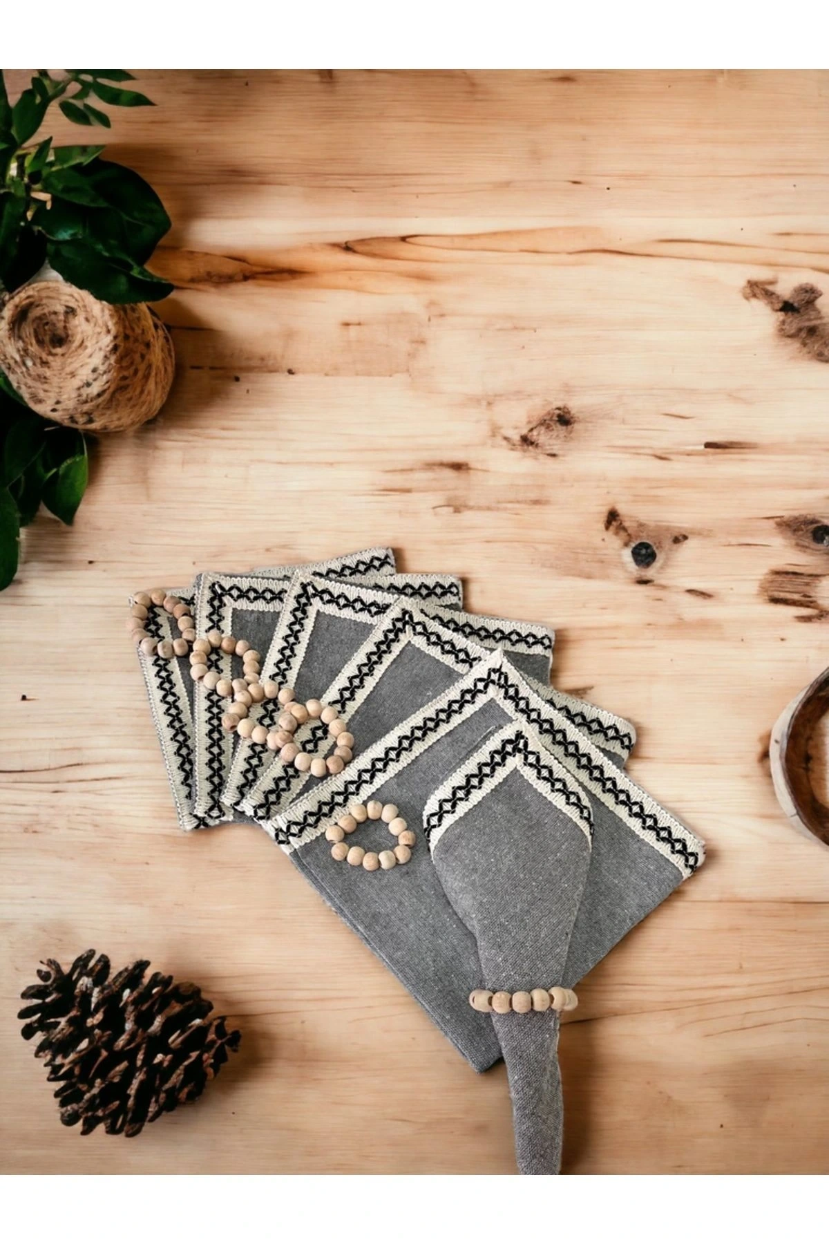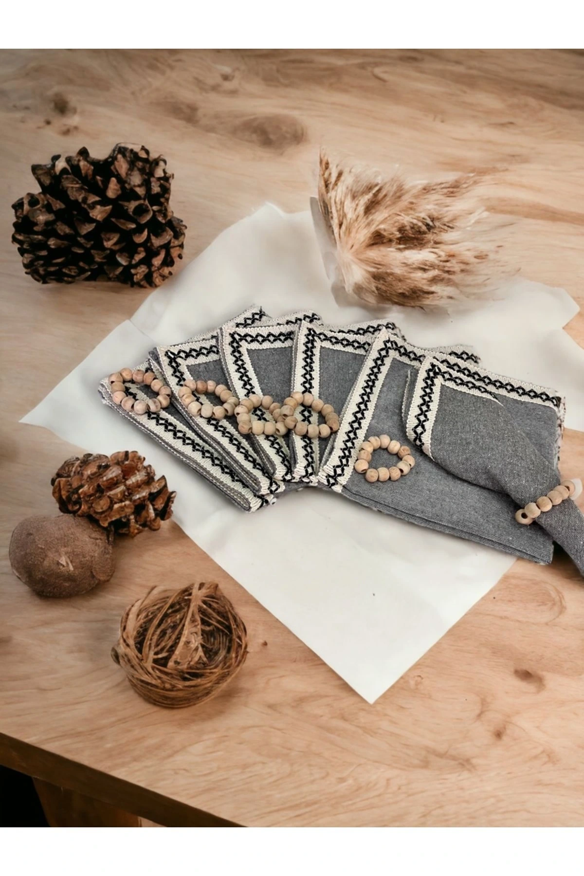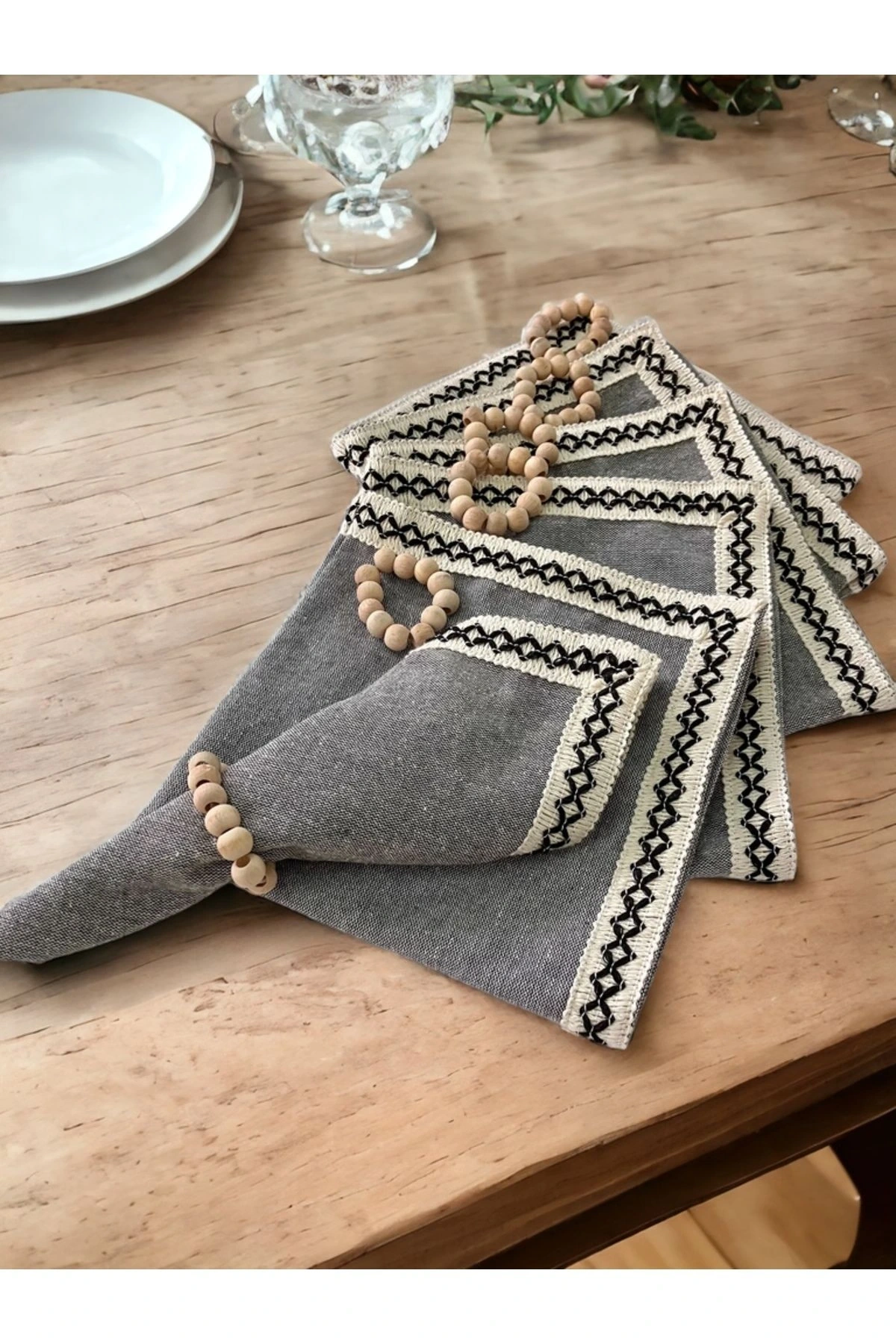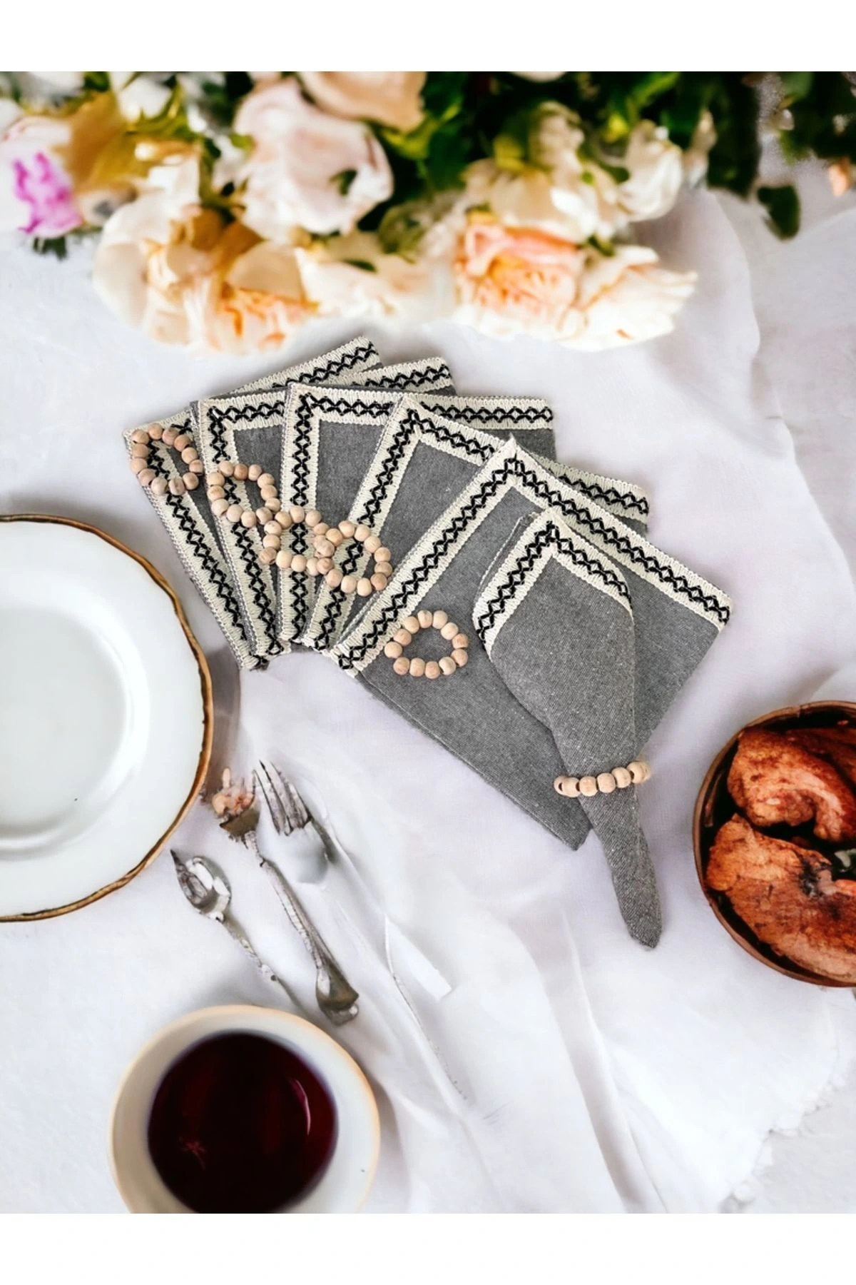 ANTRASİT Siyah Şeritli Peçete 40x40 TOKA HEDİYELİ 6LI
