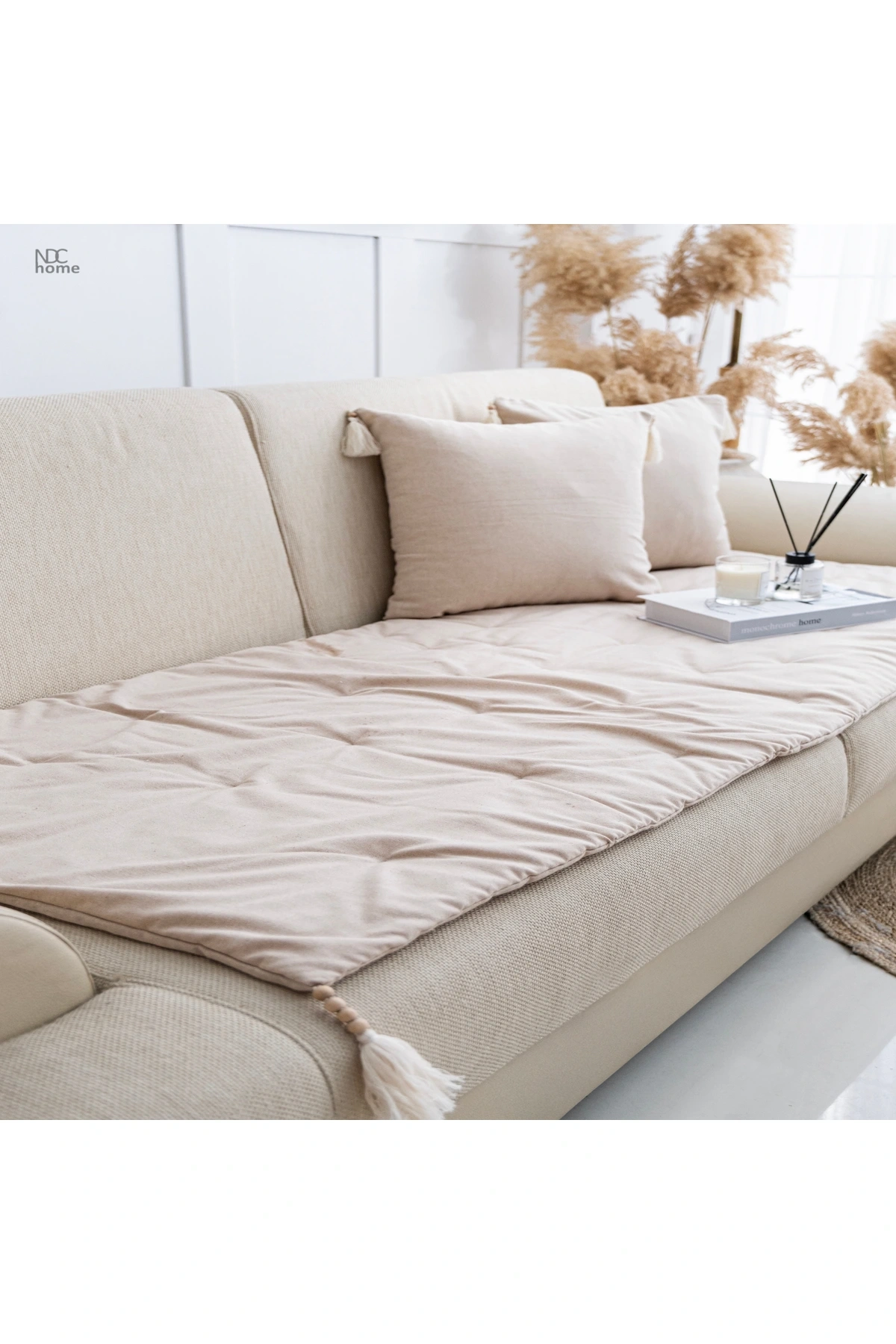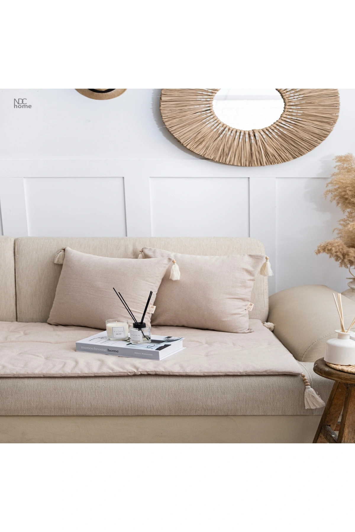 Bej Keten Evcil Hayvan Dostu Keten Koltuk Pedi /Şiltesi (80x180)