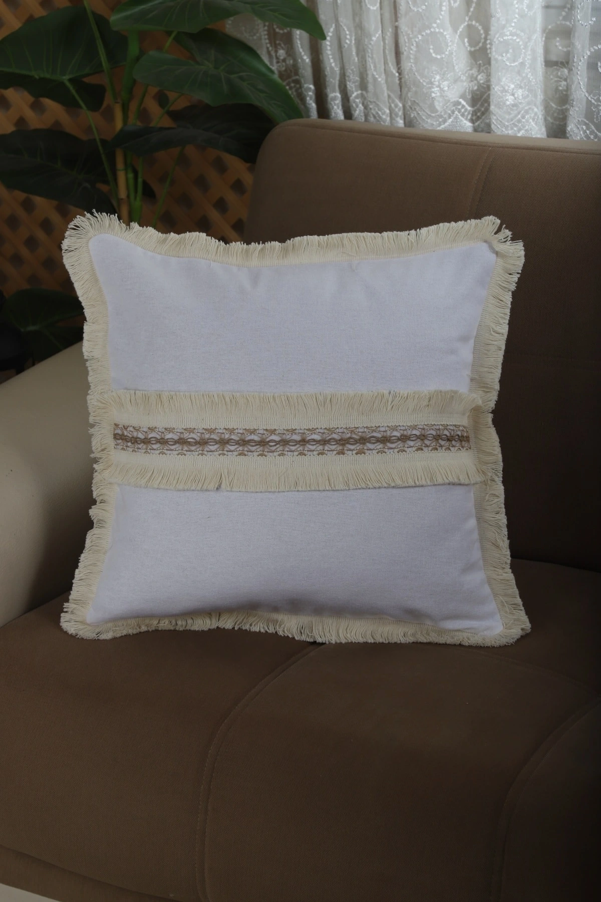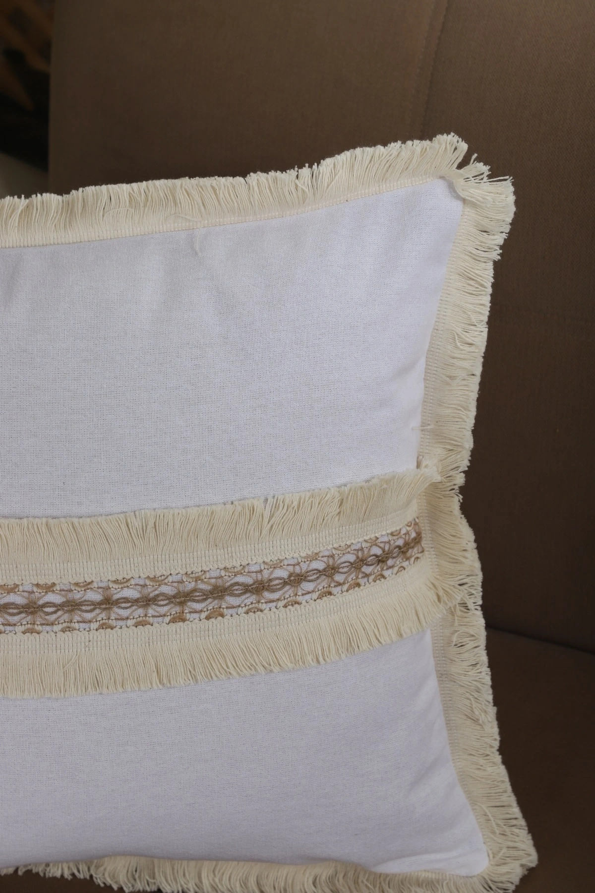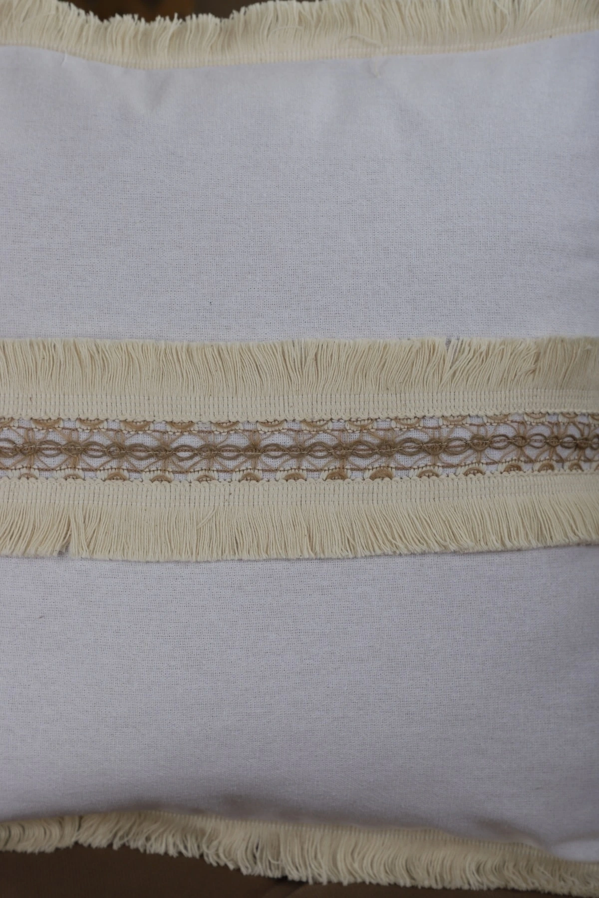 Beyaz Keten Jüt Dantelli Kırlent Kırlent Kılıfı 43 X 43