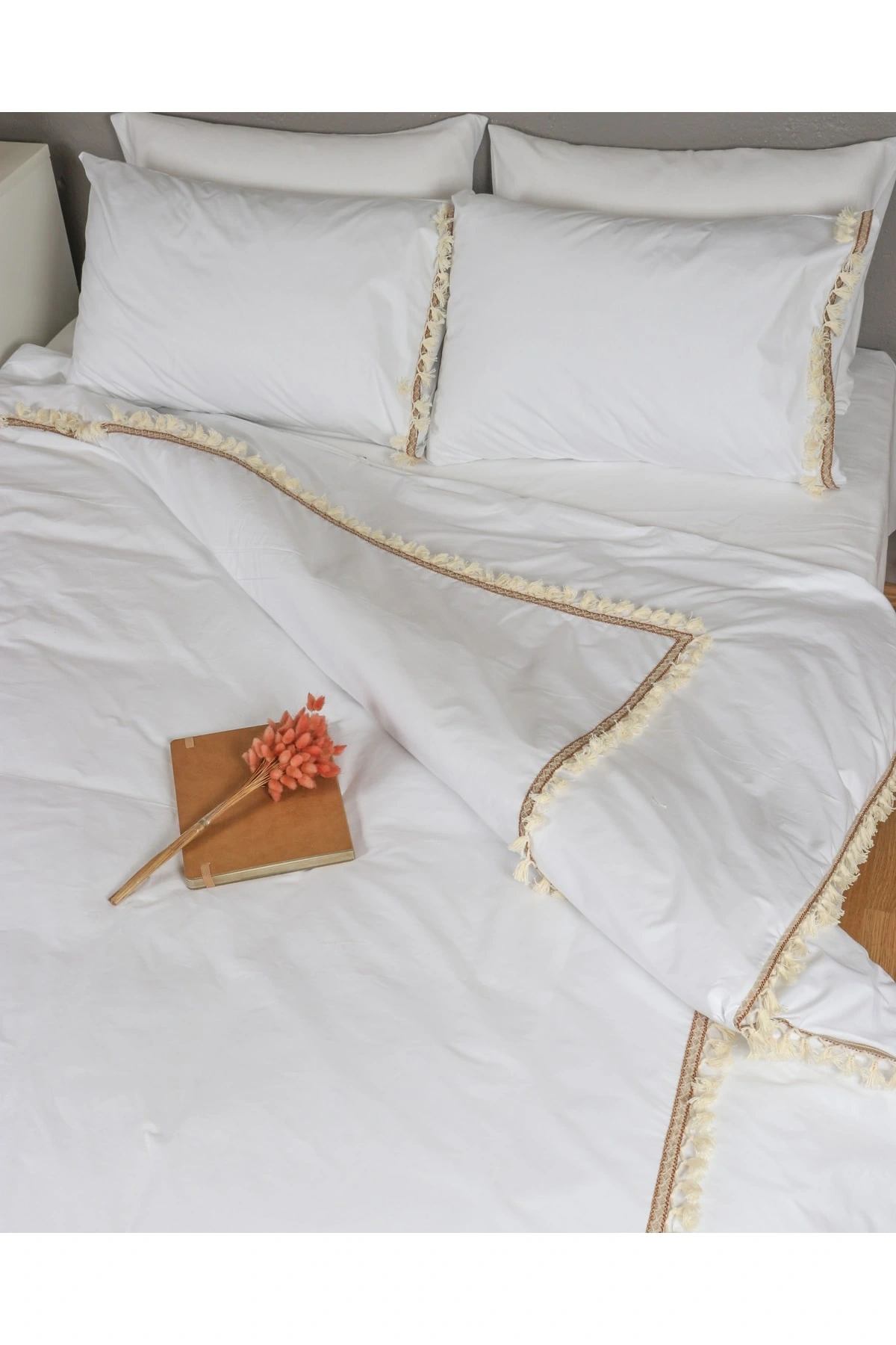 Ürünlerimiz %100 kimyasal içermeyen yıkanmış ham ketendir. ; Kullandığımız aksesuarlar %100 pamuktur. ; Ürün içeriği 1 adet (160x220) nevresim ve 1 adet yastık kılıfından oluşmaktadır, Püskülleri bozulma ve dökülme yapmaz. ; Tercihen nevresim takımı veya karyola örtüsü olarak da kullanabilmeniz için tasarlanmış, olup yorgansızda kullanılabilir. ; İLK YIKAMADA KESESİNDE ve 30 derecede yıkamanızı tavsiye ederiz. ; Modern ve spor görünümüyle evlerinizde şık bir tarz yaratmak istedik. ; Bu Ürünün SARI ,BEJ.ANTRASİT RENGİNDE SİPARİŞ ÜZERİNE DİKİLEBİLMEKTEDİR. ; Kesinlikle çamaşır suyu ve leke çıkarıcı kullanmayınız. ; Leke oluştuğunda bulaşık detarjanıyla çitilemenizi tavsiye ederiz. ; NOT:Işıktan dolayı renklerde %5 sapma olabilir.;