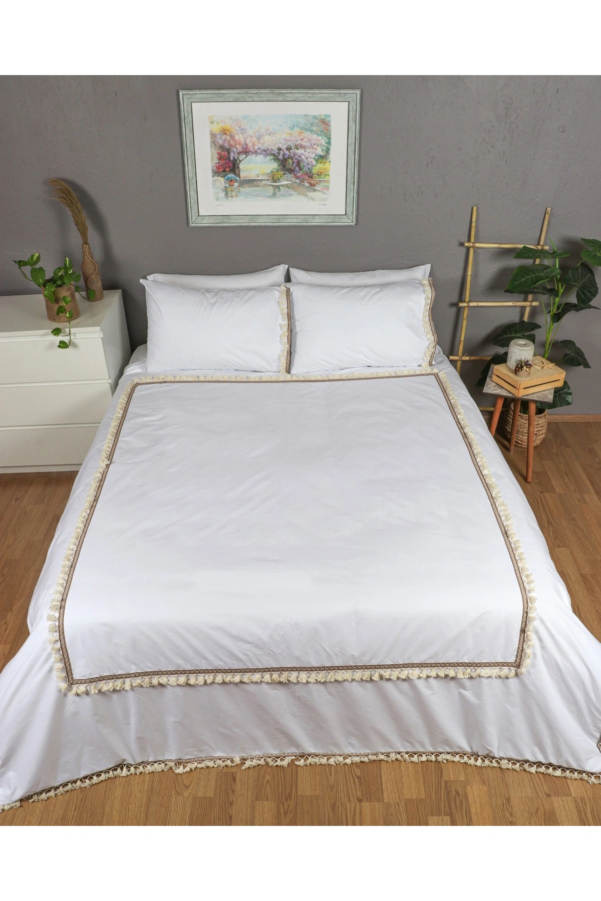 Beyaz Ponponlu %100 Pamuk Tek Kişilik Nevresim Takımı