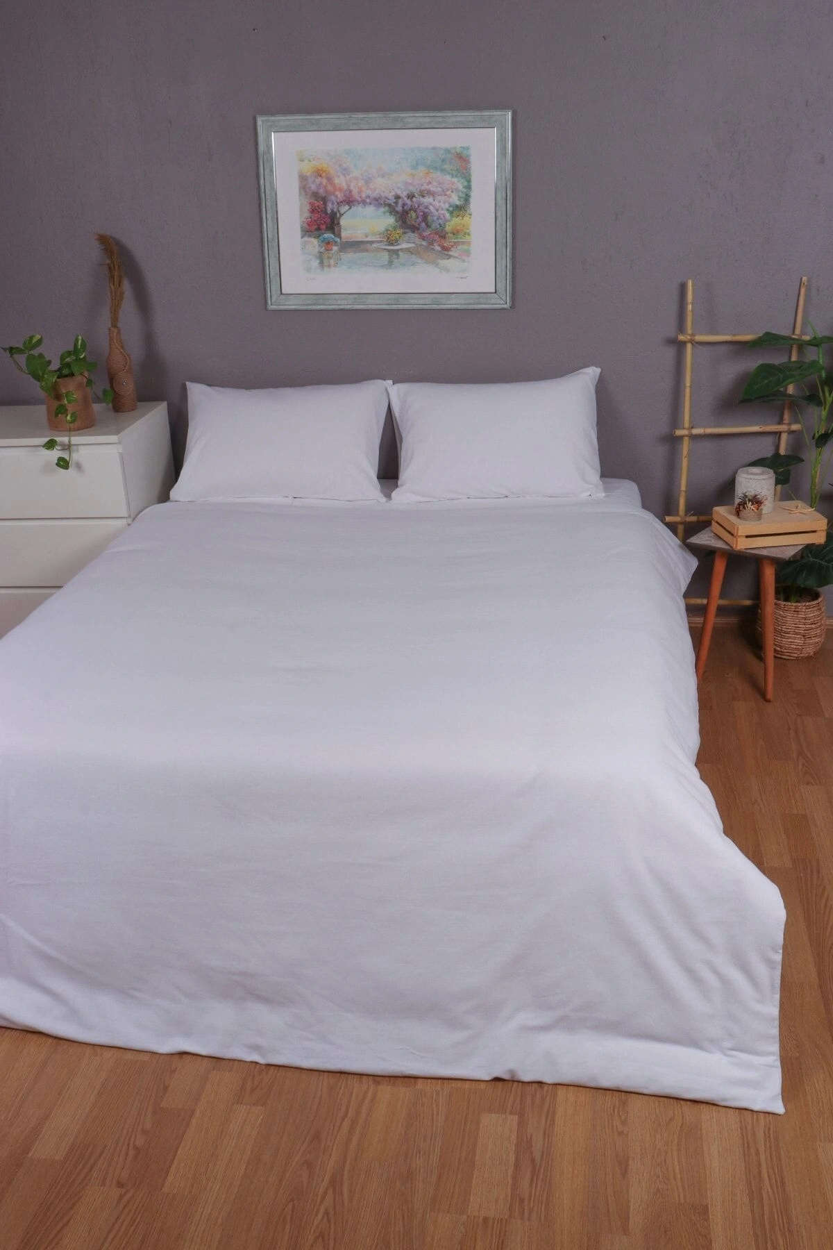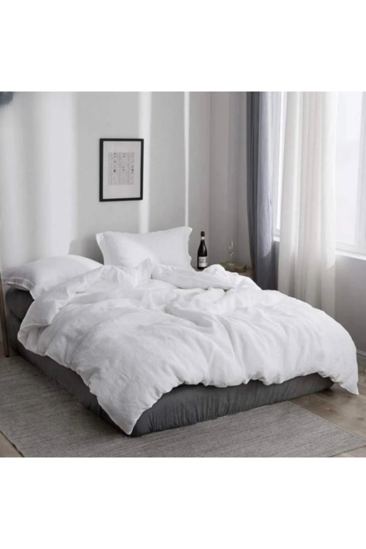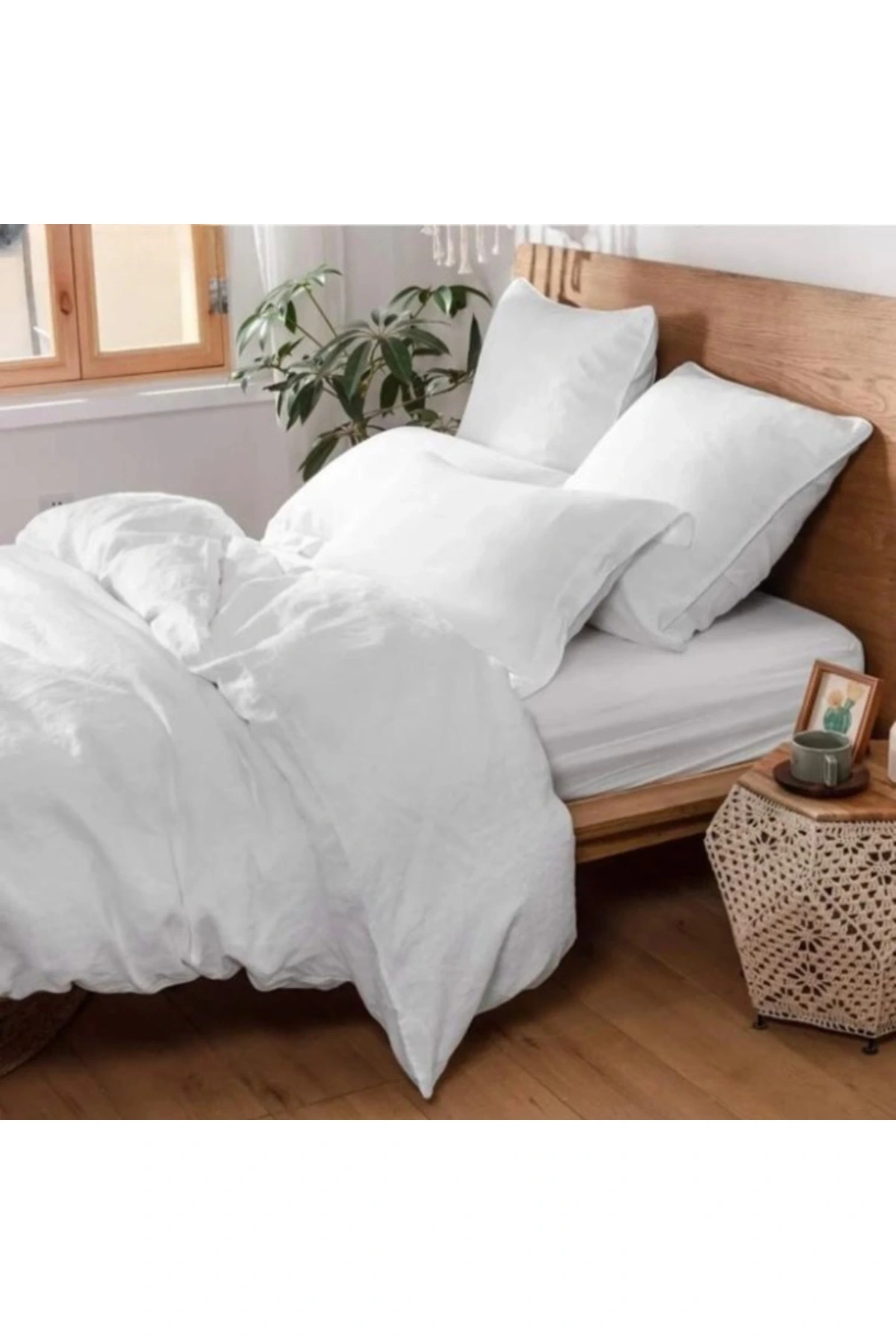 Beyaz Yıkanmış Çift Kişilik Nevresim Yastık Seti (200 X 220)