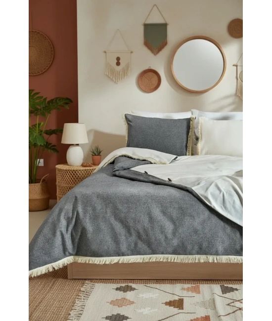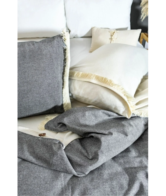 Ürünlerimiz %100 kimyasal içermeyen yıkanmış ham ketendir. ; Kullandığımız aksesuarlar %100 pamuktur. ; Ürün içeriği 1 adet nevresim ve 2 yastık kılıfından oluşmaktadır, Ponponları bozulma ve dökülme yapmaz. ; Tercihen nevresim takımı veya karyola örtüsü olarak da kullanabilmeniz için tasarlanmış, olup yorgansızda kullanılabilir. ; İlk yıkamada kesesinde ve 30 derecede yıkamanızı tavsiye ederiz. ; Modern ve spor görünümüyle evlerinizde şık bir tarz yaratmak istedik. ; Bu Ürünün SARI ,BEJ.ANTRASİT RENGİNDE SİPARİŞ ÜZERİNE DİKİLEBİLMEKTEDİR. ; Kesinlikle çamaşır suyu ve leke çıkarıcı kullanmayınız. ; Leke oluştuğunda bulaşık detarjanıyla çitilemenizi tavsiye ederiz. ; NOT:Işıktan dolayı renklerde %5 sapma olabilir.;