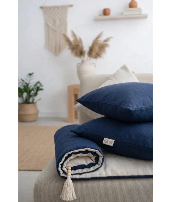 Çift taraflı kullanıma uygundur. Lacivert ve krem renkleri ile her türlü mobilya ile uyum sağlar.