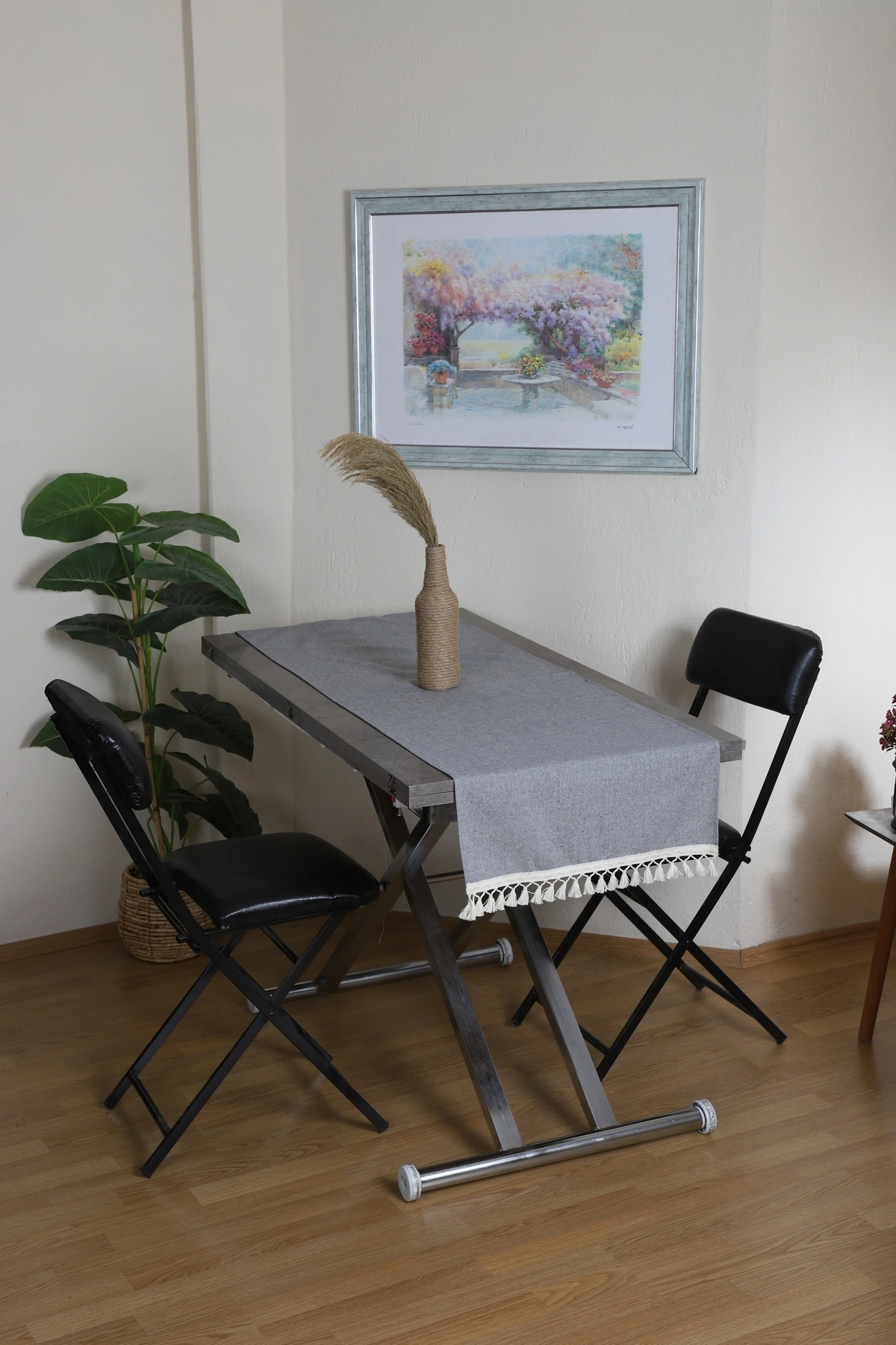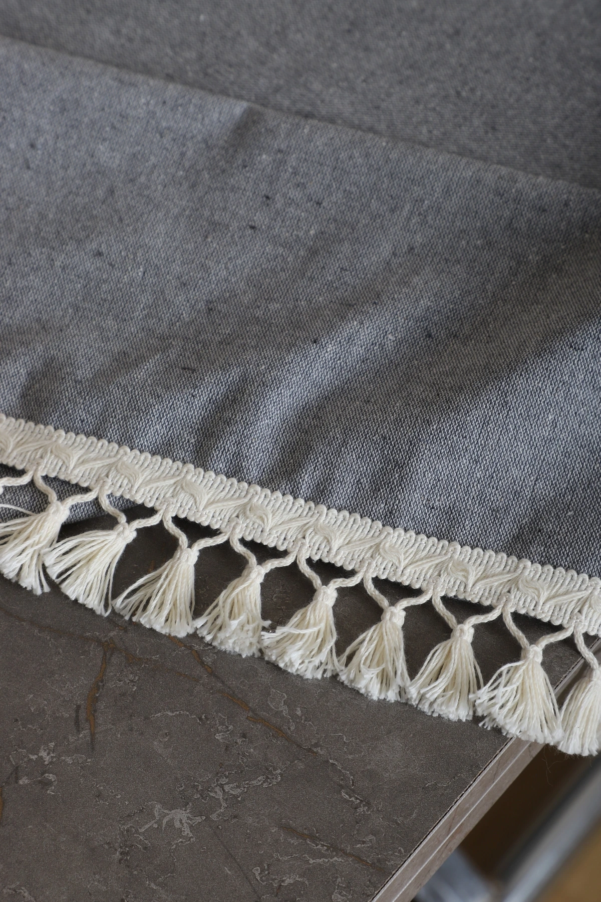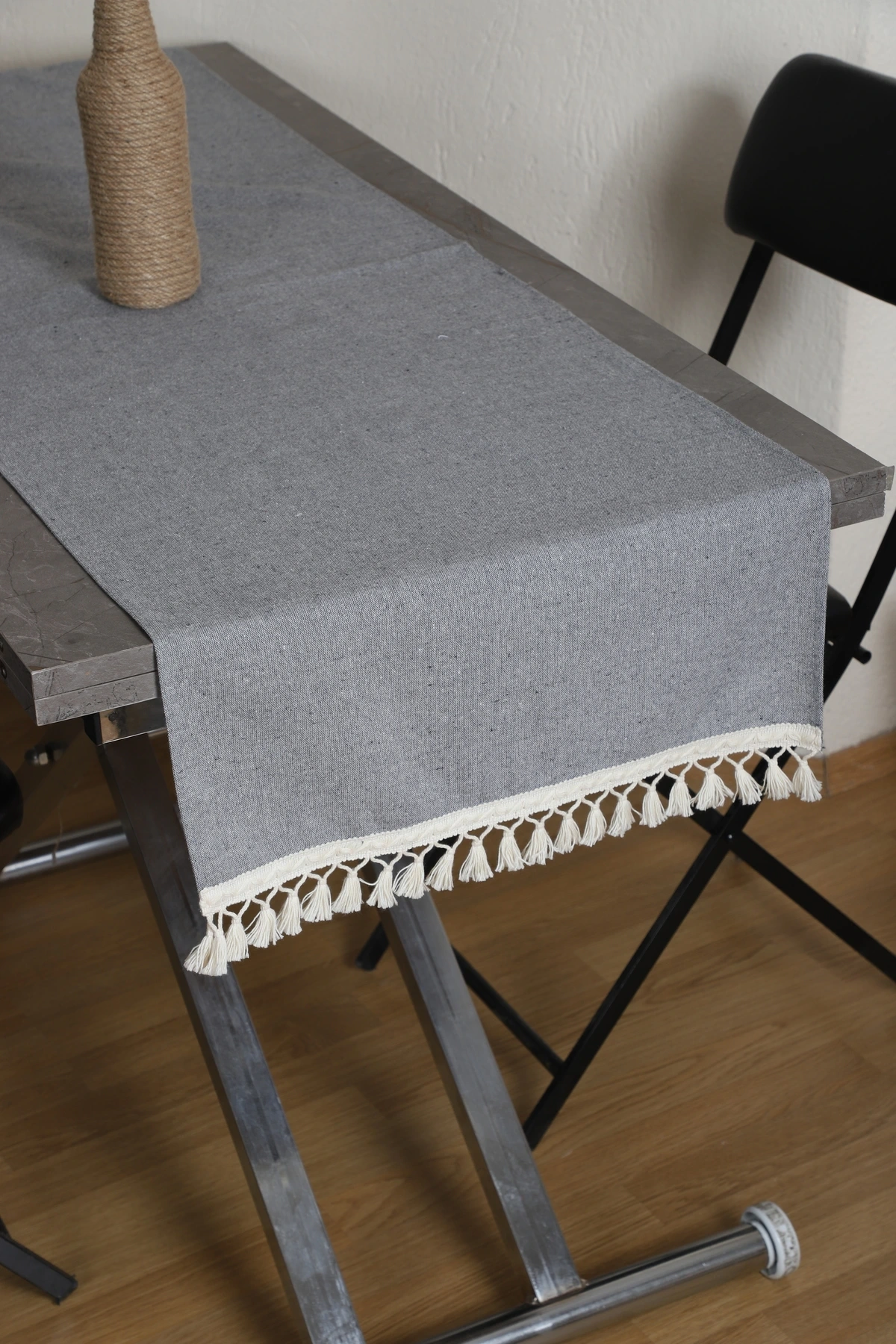 Gri Antrasit HAM Ponponlu Runner Masa Örtüsü (45 x 150)
