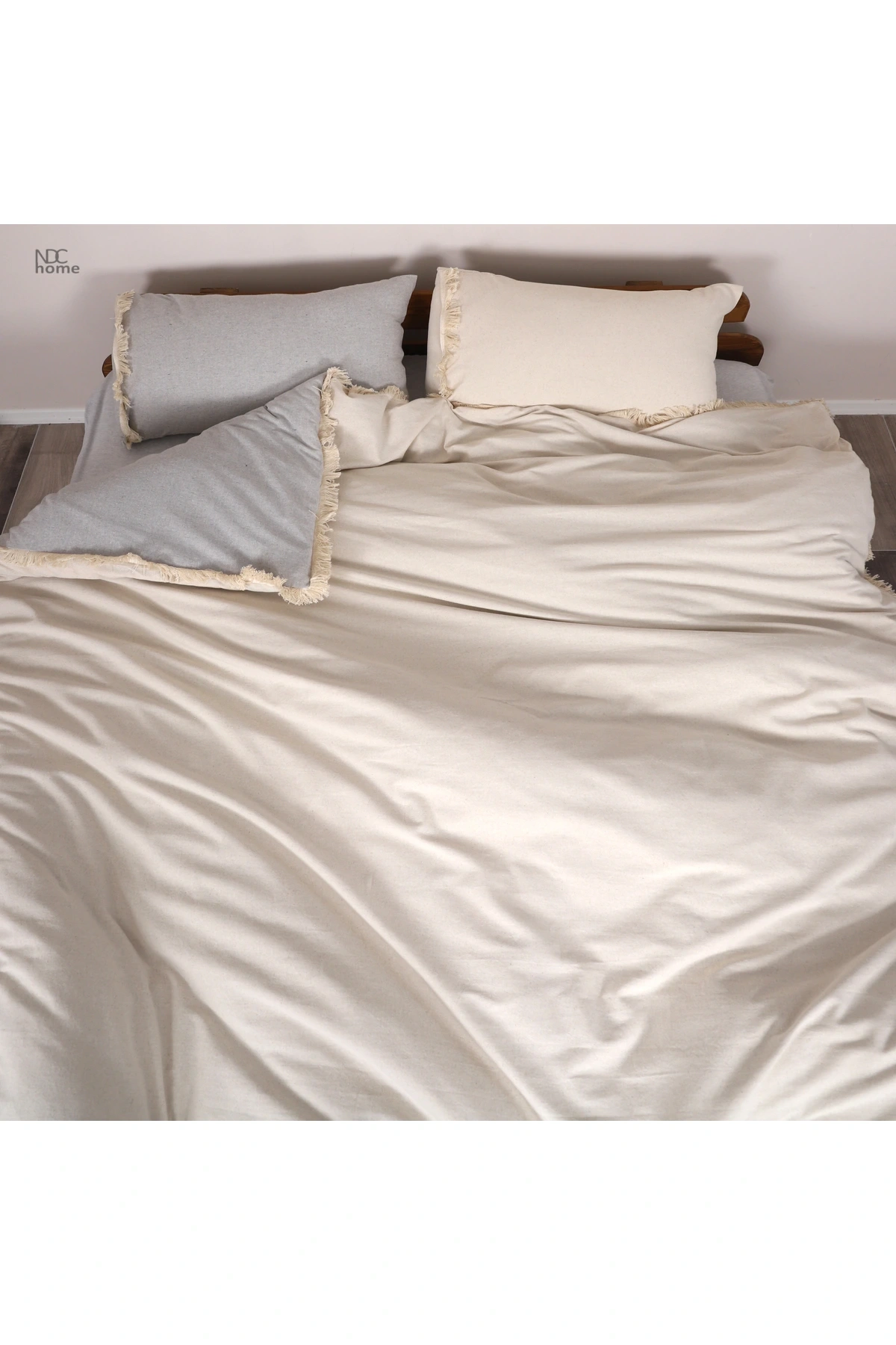 Ürünlerimiz kendi imalatımızdır.; NDC Home Keten Nevresim yastık seti keten serisi Otantik ve modern çizgiler harmanlanarak tasarlanmıştır.; Bu yapısıyla sofistike bir görüntüye sahiptir.; Özel üretim tekniği ve keten dokusuyla en yüksek kalite sağlanmaya çalışılmıştır.; NDC Home Nevresim yastık seti pamuk ve keten karışımıyla üretilmiş olup dikiş detaylarıyla kaliteli bir görünüm sunmaktadır.; Bu karışım, yumuşaklığı ve dayanıklılığı bir arada sunarak konforlu bir uyku deneyimi sağlar.; Kumaş içeriği: %100 Pamuktur.; Terleme yapmaz.; Kullandığımız aksesuarlar %100 pamuktur.; Ürün içeriği 1 adet nevresim ve 2 yastık kılıfından oluşmaktadır, Püskülleri bozulma ve dökülme yapmaz.; Tercihen nevresim takımı veya karyola örtüsü olarak da kullanabilmeniz için tasarlanmış, olup yorgansızda kullanılabilir.; İlk yıkamada kesesinde ve 30 derecede yıkamanızı tavsiye ederiz.; Modern ve spor görünümüyle evlerinizde şık bir tarz yaratmak istedik.; Kesinlikle çamaşır suyu ve leke çıkarıcı kullanmayınız.; Leke oluştuğunda bulaşık detarjanıyla çitilemenizi tavsiye ederiz.; Yıkamada Renkler birbirine karışma yapmaz.; NOT:Işıktan dolayı renklerde %5 sapma olabilir.; (TERS ÇEVİREREK YIKAMA TAVSİYE EDİLİR.; )