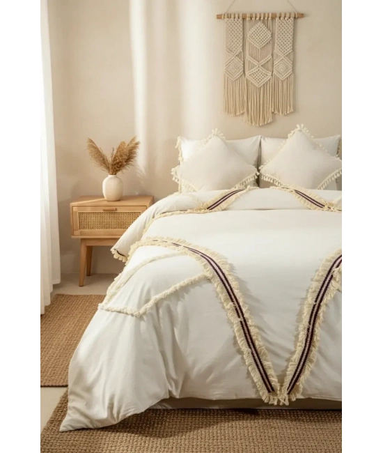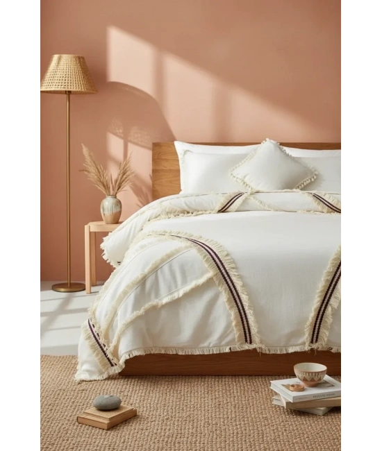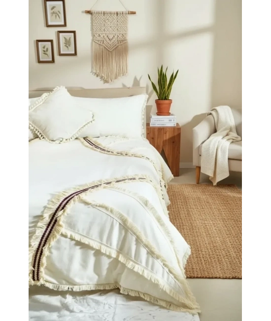 Ürünlerimiz %100 kimyasal içermeyen yıkanmış ham ketendir. ; Kullandığımız aksesuarlar %100 pamuktur. ; Ürün içeriği 1 adet nevresim ve 2 yastık kılıfından oluşmaktadır, Ponponları bozulma ve dökülme yapmaz. ; Tercihen nevresim takımı veya karyola örtüsü olarak da kullanabilmeniz için tasarlanmış, olup yorgansızda kullanılabilir. ; İlk yıkamada kesesinde ve 30 derecede yıkamanızı tavsiye ederiz. ; Modern ve spor görünümüyle evlerinizde şık bir tarz yaratmak istedik. ; Bu Ürünün SARI ,BEJ.ANTRASİT RENGİNDE SİPARİŞ ÜZERİNE DİKİLEBİLMEKTEDİR. ; Kesinlikle çamaşır suyu ve leke çıkarıcı kullanmayınız. ; Leke oluştuğunda bulaşık detarjanıyla çitilemenizi tavsiye ederiz. ; NOT:Işıktan dolayı renklerde %5 sapma olabilir. ; (Ters Çevrilerek Yıkama Tavsiye Edilir.);