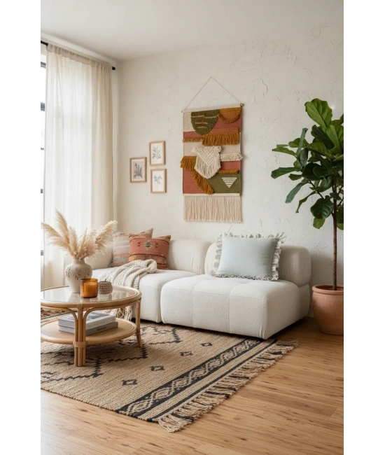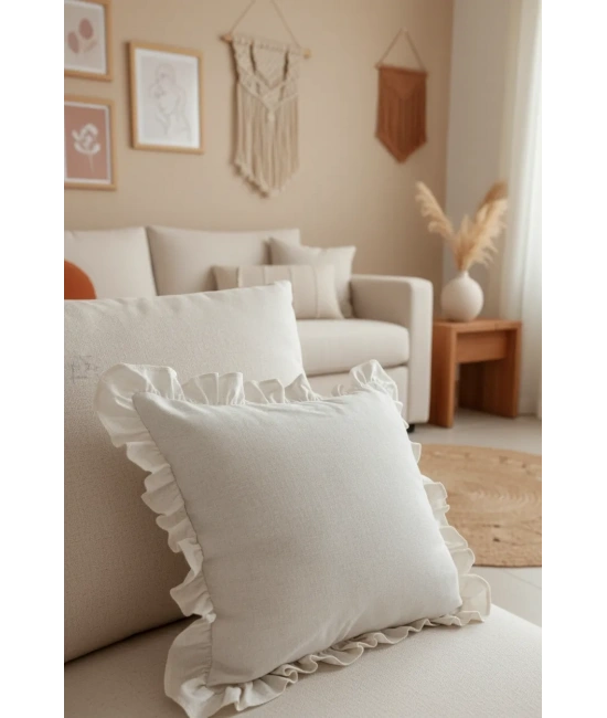 %60 keten ve %40 pamuk polyester karışımı ile üretilen bu kırlent kılıfı, doğal dokusuyla evinizin atmosferine sıcaklık ve şıklık katar; El yapımı olması, her bir parçanın benzersiz ve özgün bir dokunuşla tamamlanmasını sağlar; Kare şekliyle modern ve klasik dekorasyon stillerine uyum sağlayarak mekanınıza estetik bir katkı sunar; 30 derecede yıkama imkanı sayesinde kolayca temizlenebilir ve uzun süreli kullanım için idealdir; Tek parça olarak sunulan bu ürün, kolayca değiştirilebilir ve farklı kırlentlerle kombinlenebilir; Bohem temalı tasarımıyla evinizin dekorasyonuna rahat ve doğal bir hava katarken, kumaşın yumuşak dokusuyla konforlu bir kullanım sunar;