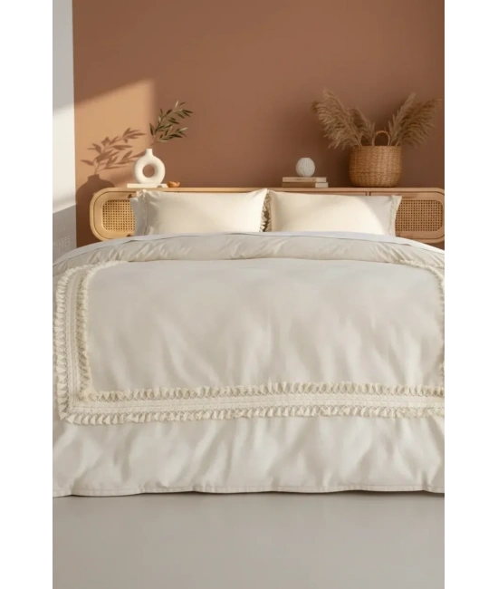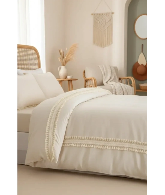 Ürünlerimiz %100 kimyasal içermeyen yıkanmış ham ketendir. ; Kullandığımız aksesuarlarlar %100 pamuktur. ; Ürün içeriği 1 adet nevresim ve 2 yastık kılıfından oluşmaktadır, Ponponları bozulma ve dökülme yapmaz. ; Tercihen nevresim takımı veya karyola örtüsü olarakta kullanabilmeniz için tasarlanmış , olup yorgansızda kullanılabilir. ; İlk yıkamada kesesinde ve 30 derecede yıkamanızı tavsiye ederiz. ; Modern ve spor görünümüyle evlerinizde şık bir tarz yaratmak istedik. ; Ürün içeriğinde 1 adet nevresim 2 adet yastık kılıfı bulunmaktadır.;