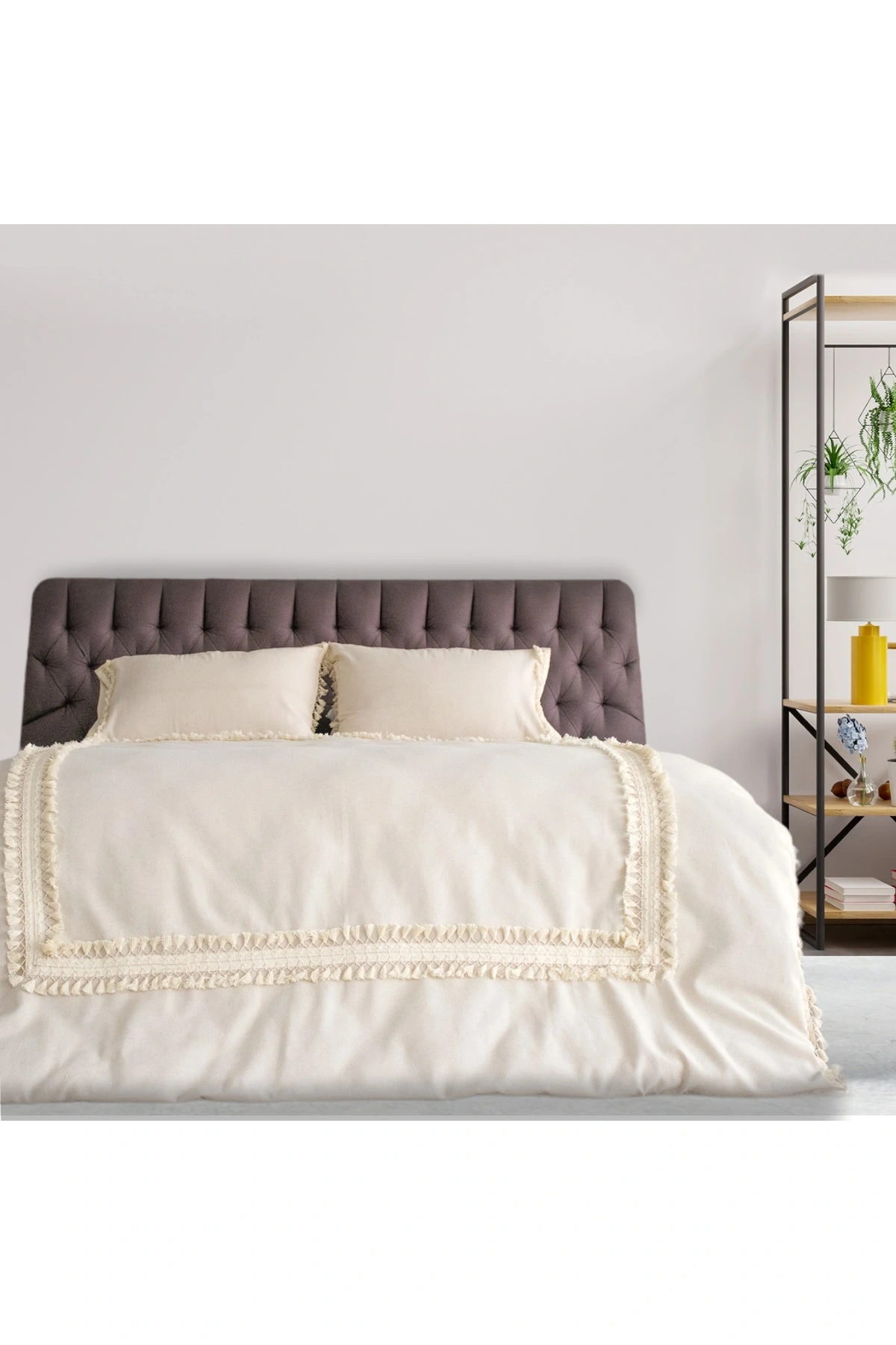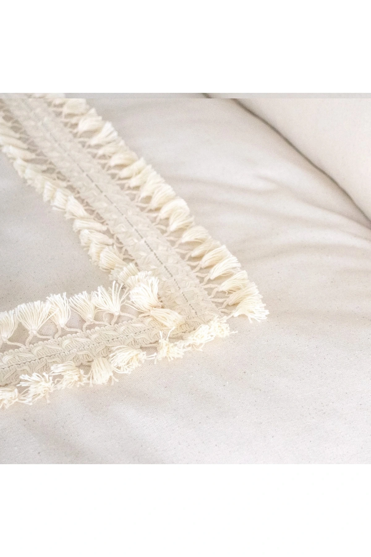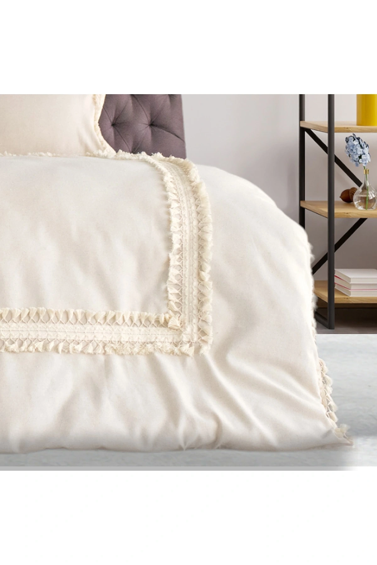 Ham Keten Krem Ponponlu Tek Kişilik Nevresim Takımı(YEDEK YASTIKLI)