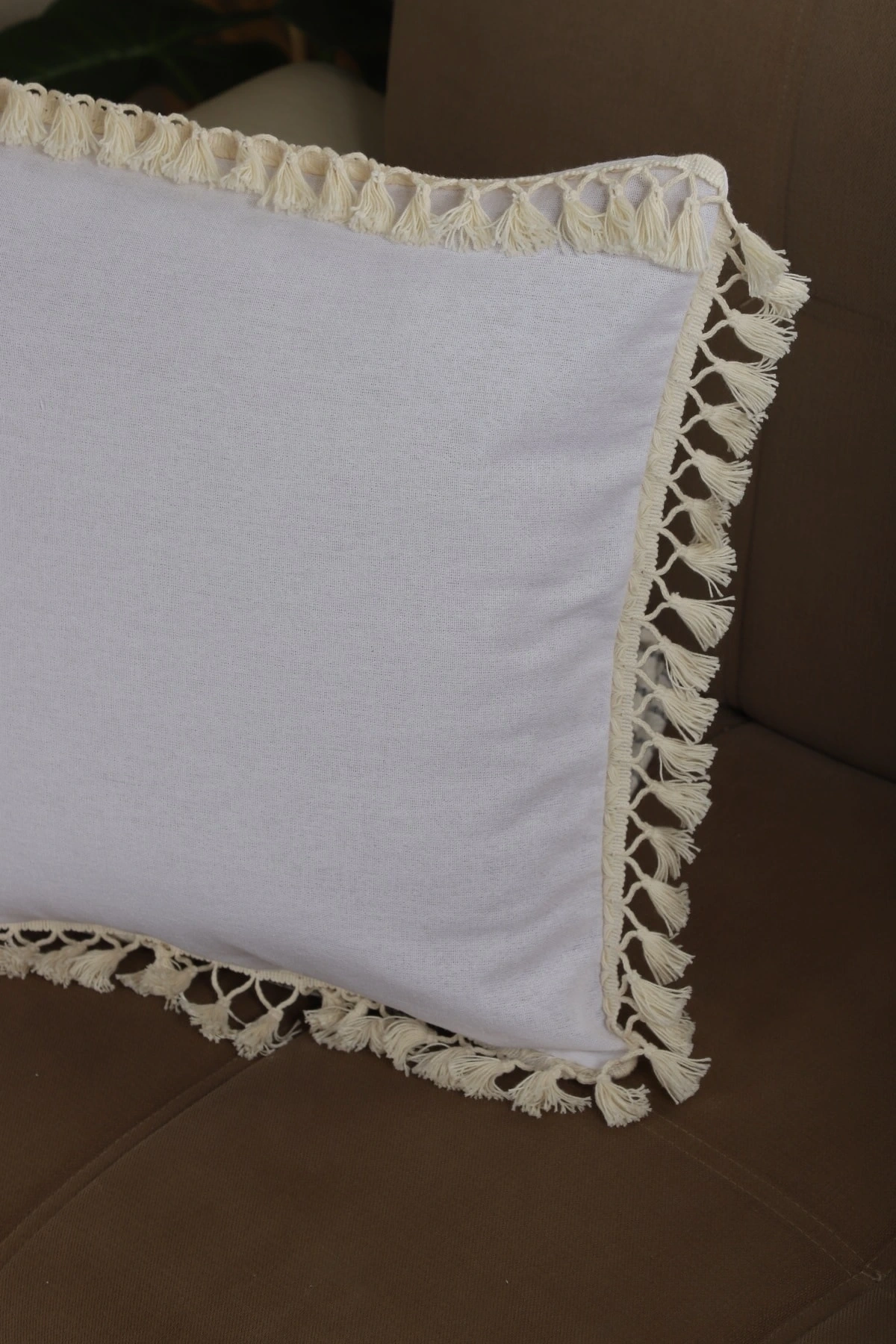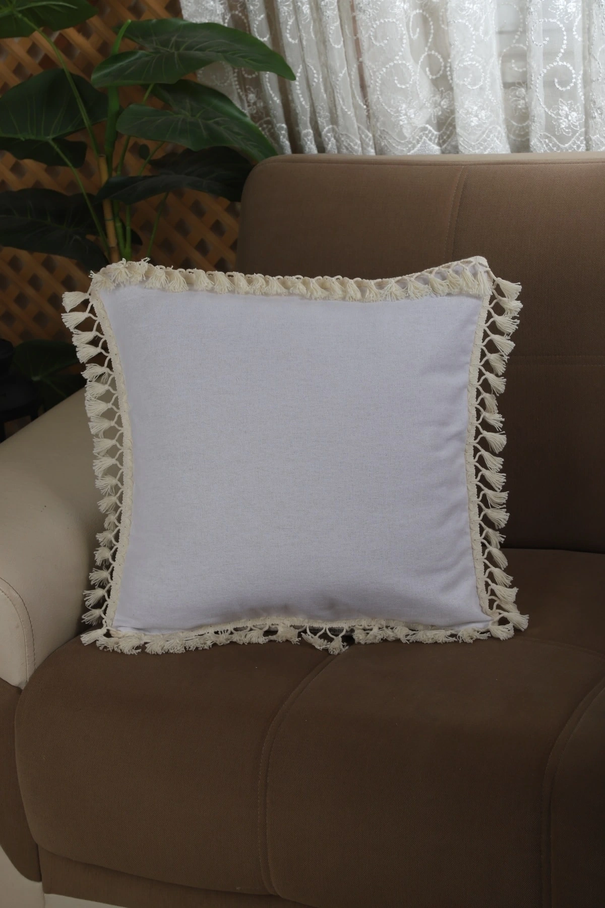 Keten Beyaz Ponponlu Kırlent Kırlent Kılıfı 43 X 43