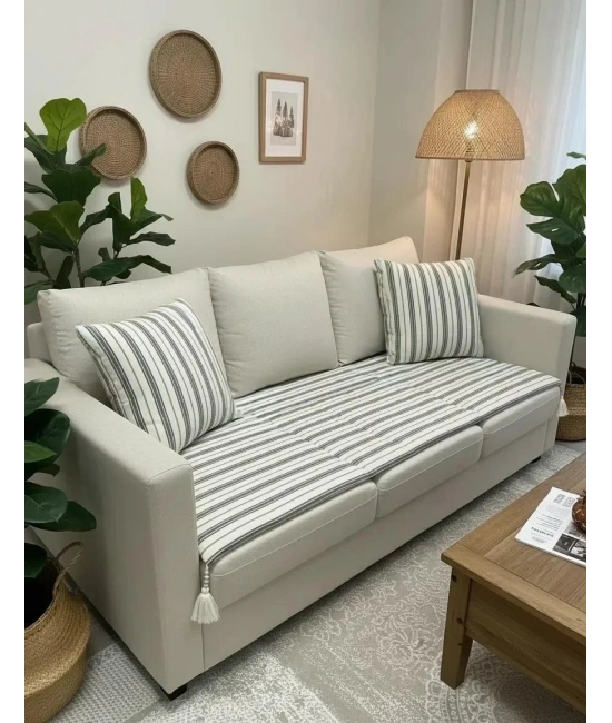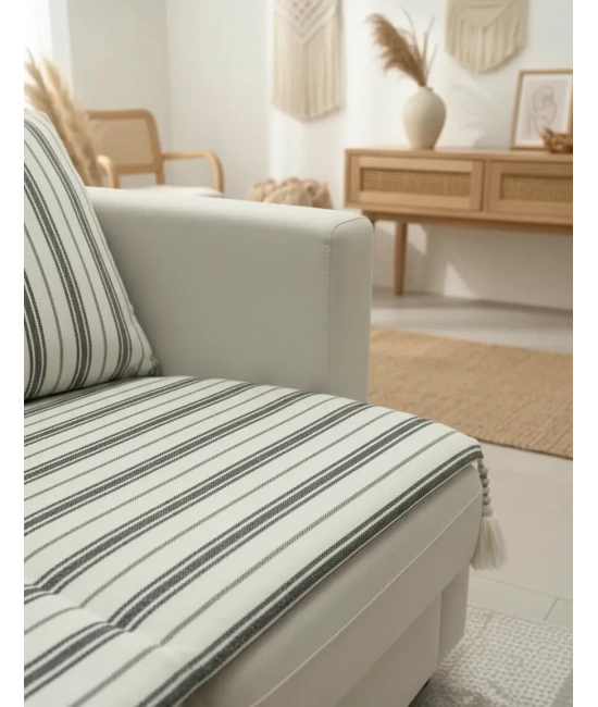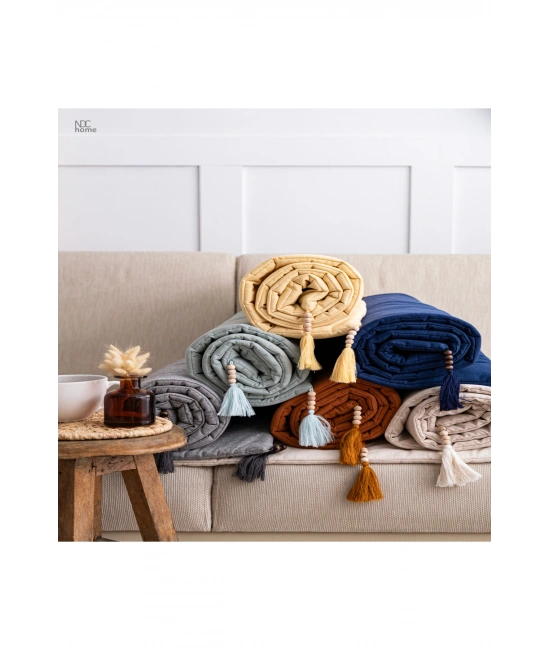 Köşelerinde bulunan dekoratif püskül detayları ile estetik bir görünüm sunar. Ürünle birlikte 2 adet kırlent kılıfı hediye olarak gönderilmektedir.