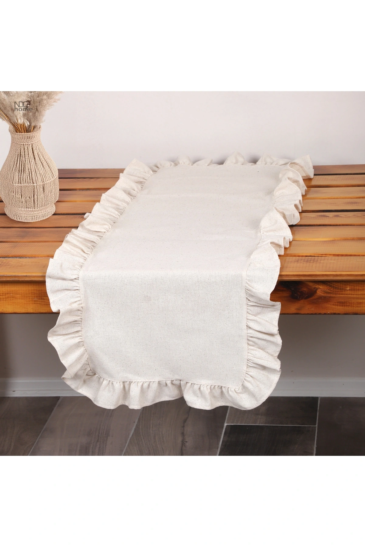 Ürünlerimiz kendi imalatımız olup boyasız ketendir.; ; Keten runner masa örtüleri ister özel davetlerinizde istersenizde dekoratif amaçlı kullanabileceğiniz sade ve şık ürünlerdir.; Yüksek kaliteli keten materyali sayesinde hafif ve nefes alabilen yapısıyla, konforlu bir dokunuş sunar.; Makina dikişiyle sabitlenmiştir.; Runnerın ölçüsü eni 40 cm boy ise 110 cmdir.; Fırfırlar ölçüye dahildir.; Uzun vadeli kullanıma uygun üretim yapılmıştır.; Çekme ve solma yapmaz.; 30 derecede yıkamanızı tavsiye ederiz.; *** KESİNLİKLE KURUTMA YAPMAYINIZ.; ***