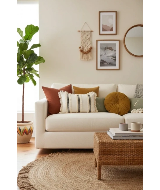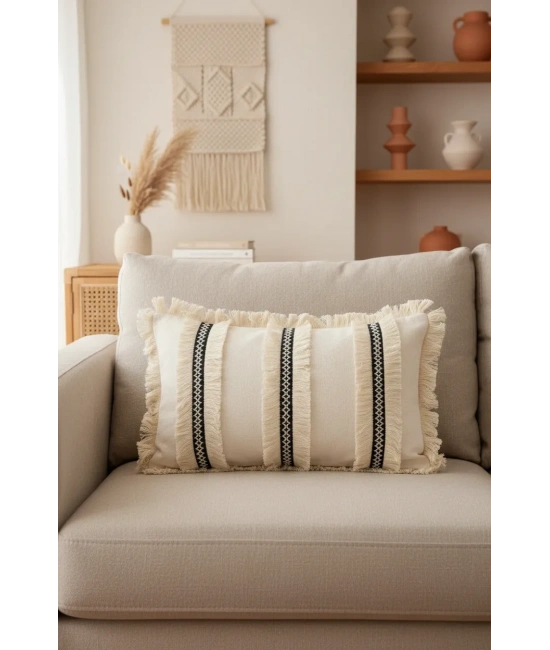 30 derecede kolayca yıkanabilir yapısı sayesinde, pratik kullanım sunar ve temizliği kolaydır; Tek parça halinde sunulan bu kırlent kılıfı, ev dekorasyonunuza şıklık katmak için idealdir; Klasik dikdörtgen şekliyle her türlü yastık kılıfına uyum sağlar ve mekanınıza modern bir dokunuş ekler; El yapımı olmasıyla benzersiz ve otantik bir hava yaratırken, bohem stilinizi yansıtır; %60 keten ve %40 pamuk polyester karışımından üretilmiş materyali ile yumuşak dokusuyla konforlu bir kullanım sunar; Keten materyali sayesinde doğal ve dayanıklı bir yapıya sahip olup, uzun süreli kullanım için uygundur;