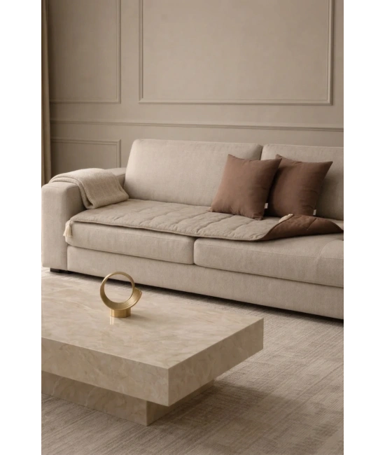 Ürün; keten kumaş dış yüzeyi ve termo elyaf dolgusu sayesinde yumuşak, nefes alabilen ve uzun ömürlü bir kullanım sunar. Günlük kullanımda, çocuklu ailelerde ve evcil hayvan bulunan evlerde formunu uzun yıllar korur.