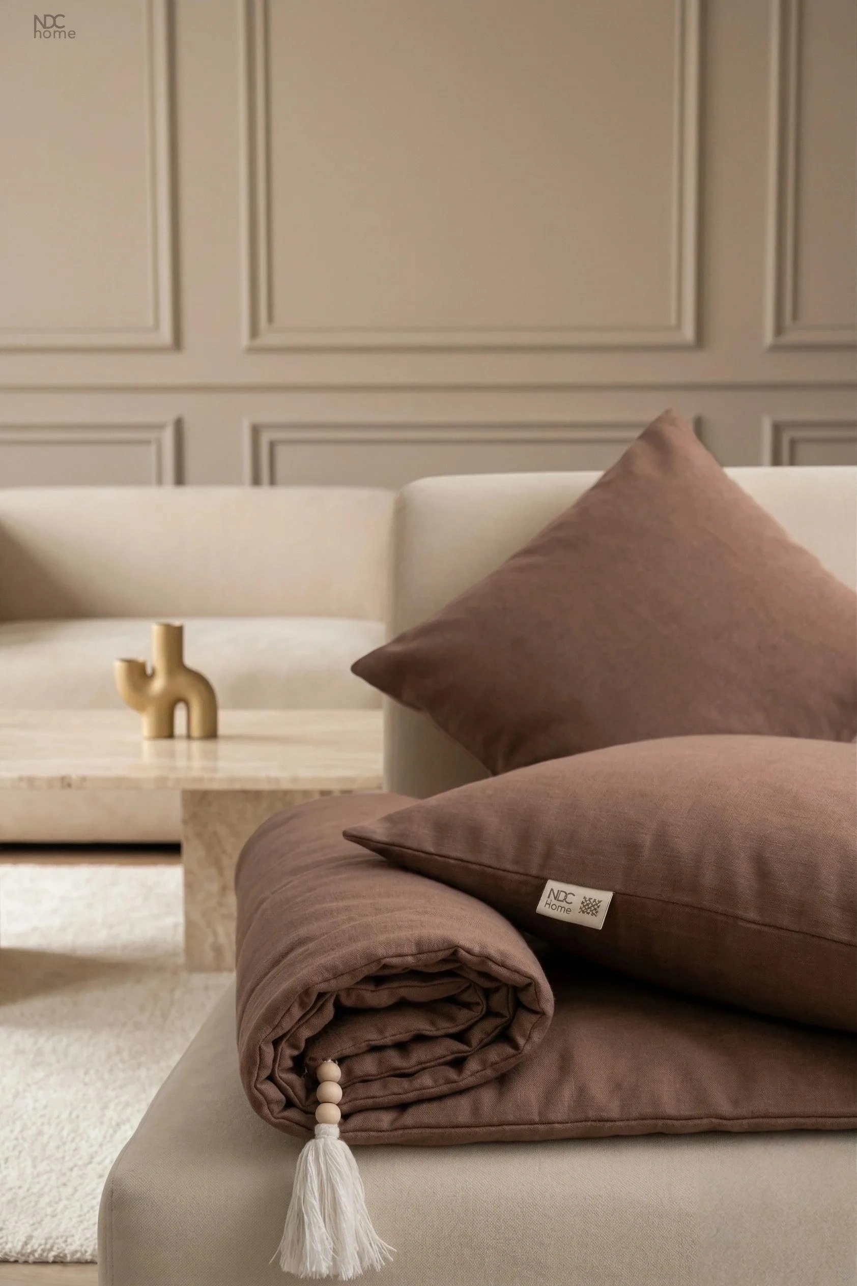 Ürün; keten kumaş dış yüzeyi ve termo elyaf dolgusu sayesinde yumuşak, nefes alabilen ve uzun ömürlü bir kullanım sunar. Günlük kullanımda, çocuklu ailelerde ve evcil hayvan bulunan evlerde formunu uzun yıllar korur.