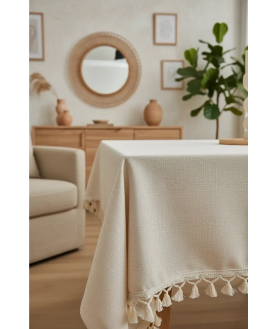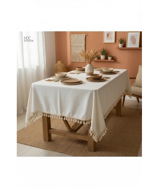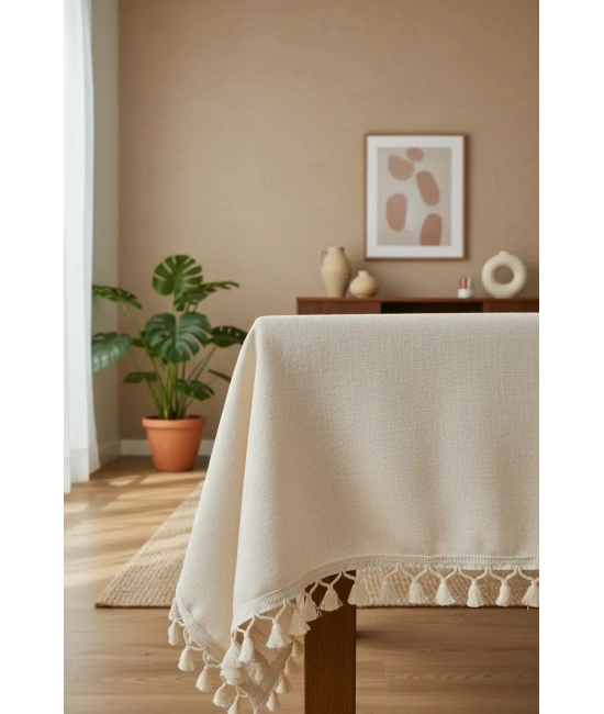 Görseldeki masa örtüsü ebatı 140 x 180 olup masa ebatı 80 x 120 dir. ; Ürünlerimiz kendi imalatımız olup,doğal keten ipliğinin en doğal hali ile geneleksel eski dokuma tezgahlarında dokunmuştur. ; Üzerindeki dantel aksesuarı dikişle sabitlenmiş olup, herhangi bir defarmasyona uğramayacak şekilde özenle dokunmuştur. ; Ponponları kesinlikle dökülme yapmaz Günlük kulanım için idealdir. ; Salon,Mutfak,Bahçe ve özel günlerinizde gönül rahatlığıyla kullanabilirsiniz. ; Kumaş: Yıkanmış dokuma kumaş, %60 Keten %40 Pamuk Polyester, Polietilen içermez. ; Keten kumaşı çabuk kuruma özelliğine sahiptir. ; Dikim: Kenarları çift kat ince dikişli kumaş. ; Aksesuar: %70 Pamuk %30 Polyester, özel olarak dokunmuştur. ; El yapımı yerli üretimdir. ; Bakım talimatları: 30°C makinada kısa programda yıkama yapabilirsiniz. ; Ürünü ilk yıkamada kendi kesesinde yıkama tavsiye edilir. ; Leke Çıkarmak için bulaşık detarjanıyla hafif çitilemeniz yeterlidir. ; Çamaşır suyu kullanılmaz. ; Kurutma Makinası kullanılmaz. ; Kuru temizleme yapılmaz. ; Keten bitkilerin doğal yapısından kaynaklanan yıkama sonrasındaki kırışık görünüm, isteğe bağlı olarak orta ayarda ütülenerek giderilebilir. ; Kumaş içerisinde Polyester vb. ; dertsiz kumaş etkisi veren maddeler bulunmadığı için ağır yağ lekelerinin çıkmaması olasıdır. ; Talimatlara uyulduğu takdirde renklerde solma olmayacaktır. ; NOT: Işıktan Dolayı Renklerde %5 Sapma Olabilir. ; *** KESİNLİKLE KURUTMA YAPMAYINIZ. ; ***;