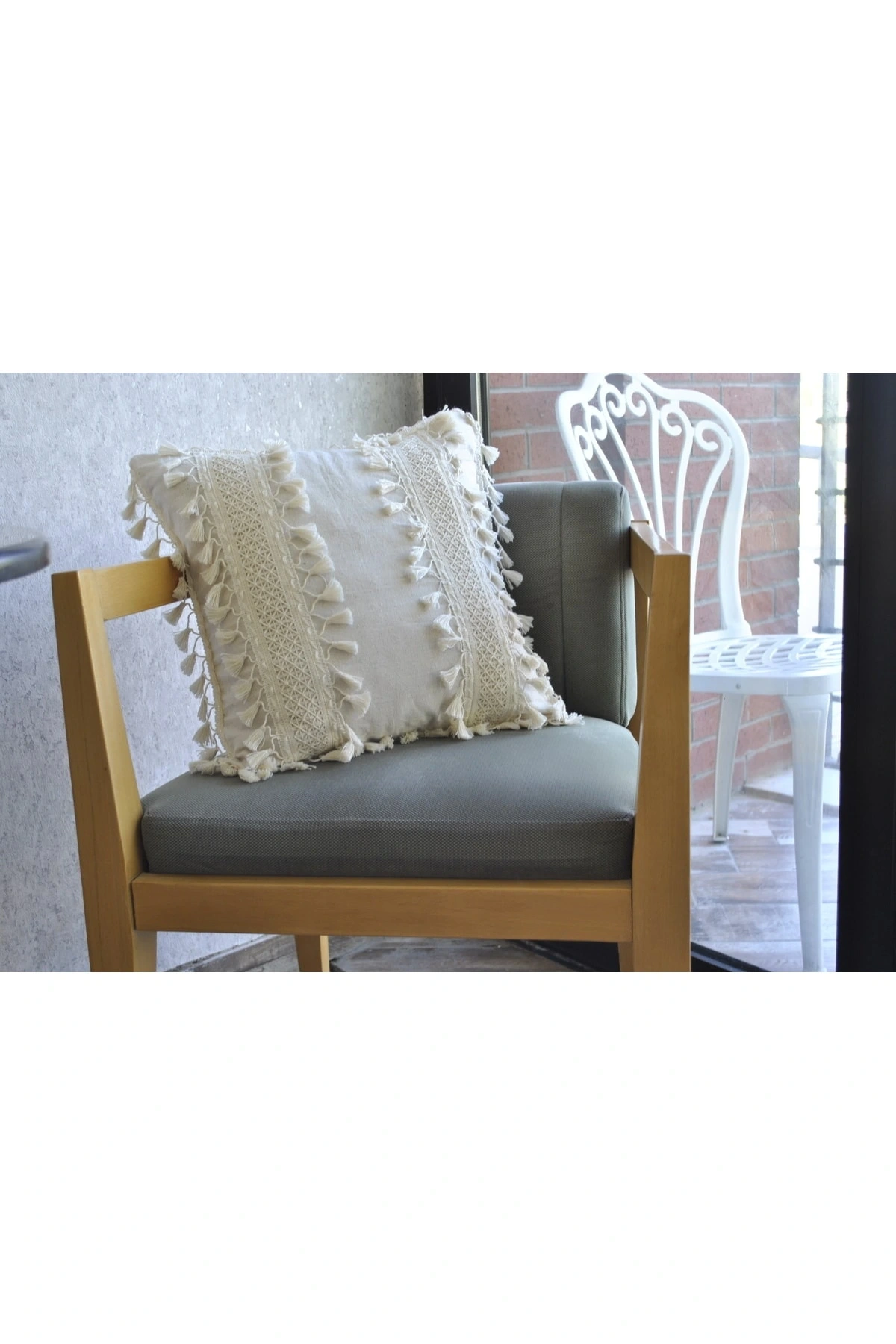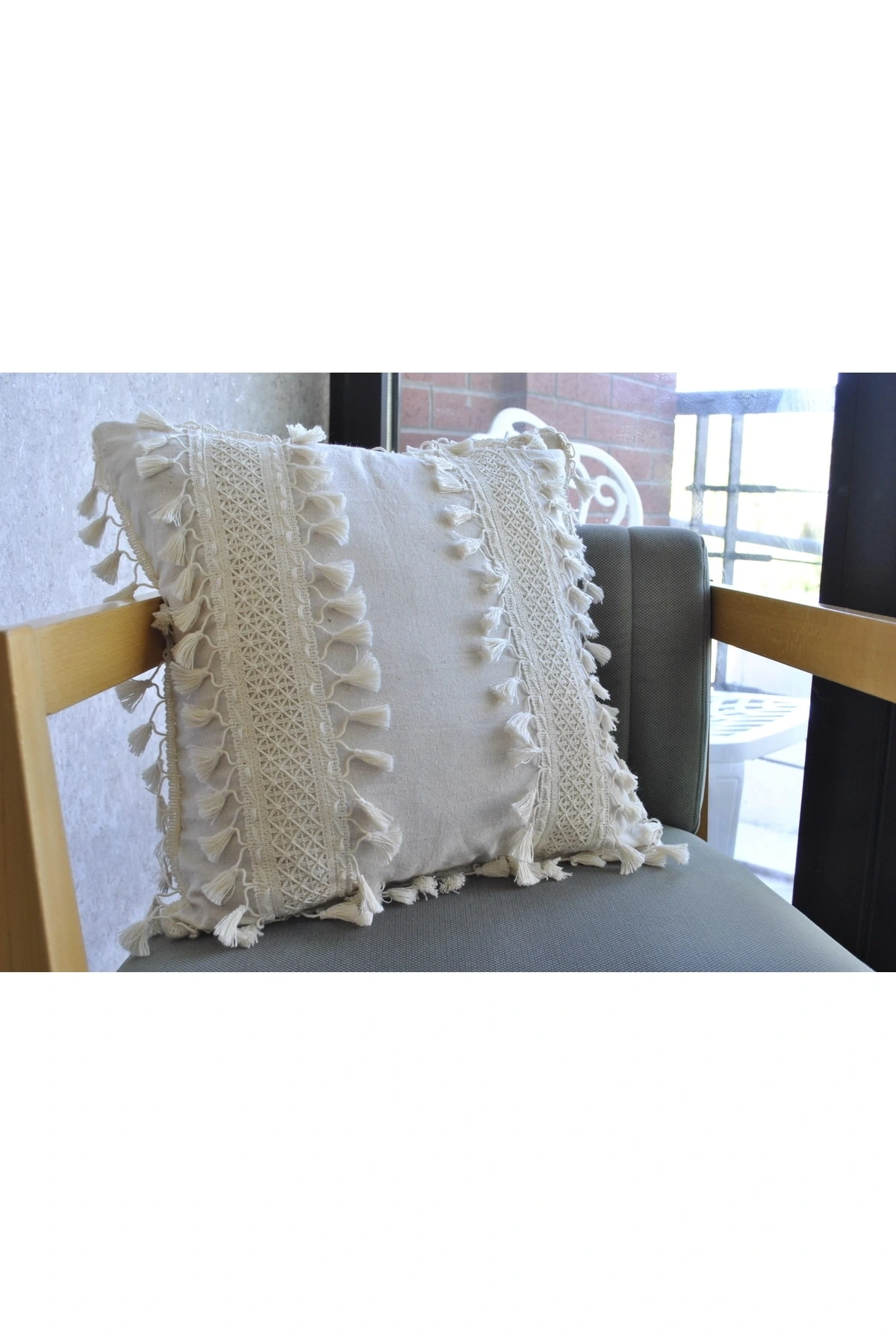 Özel Tasarım Ham Kalın Dantelli Tekli Keten Kırlent Kırlent Kılıfı 43*43