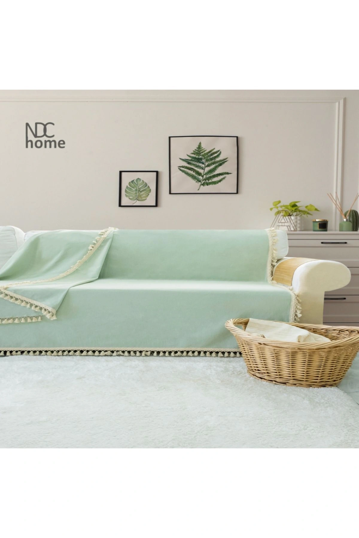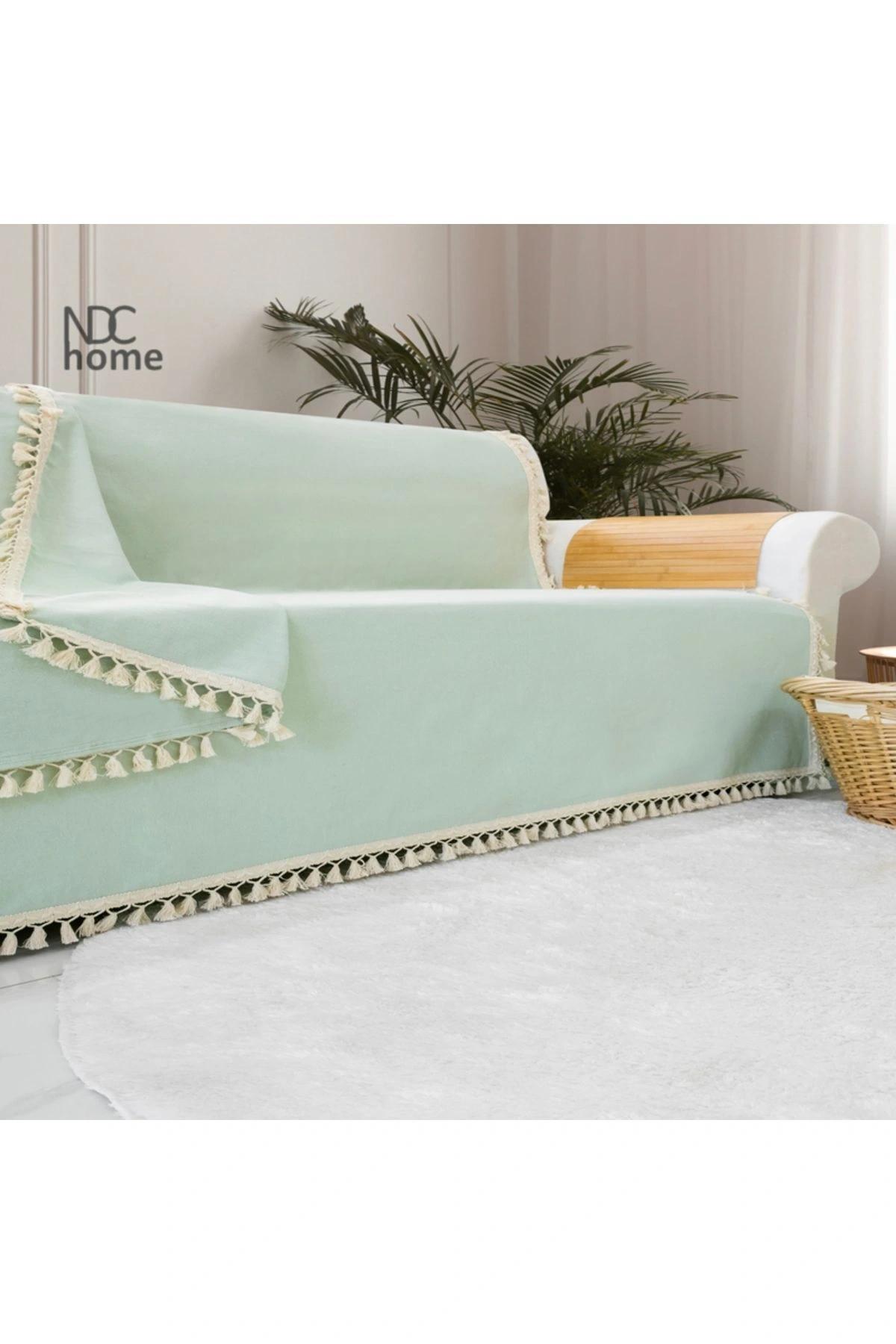 Premium Keten Adaçayı Ponponlu Koltuk Örtüsü (170 x 220)