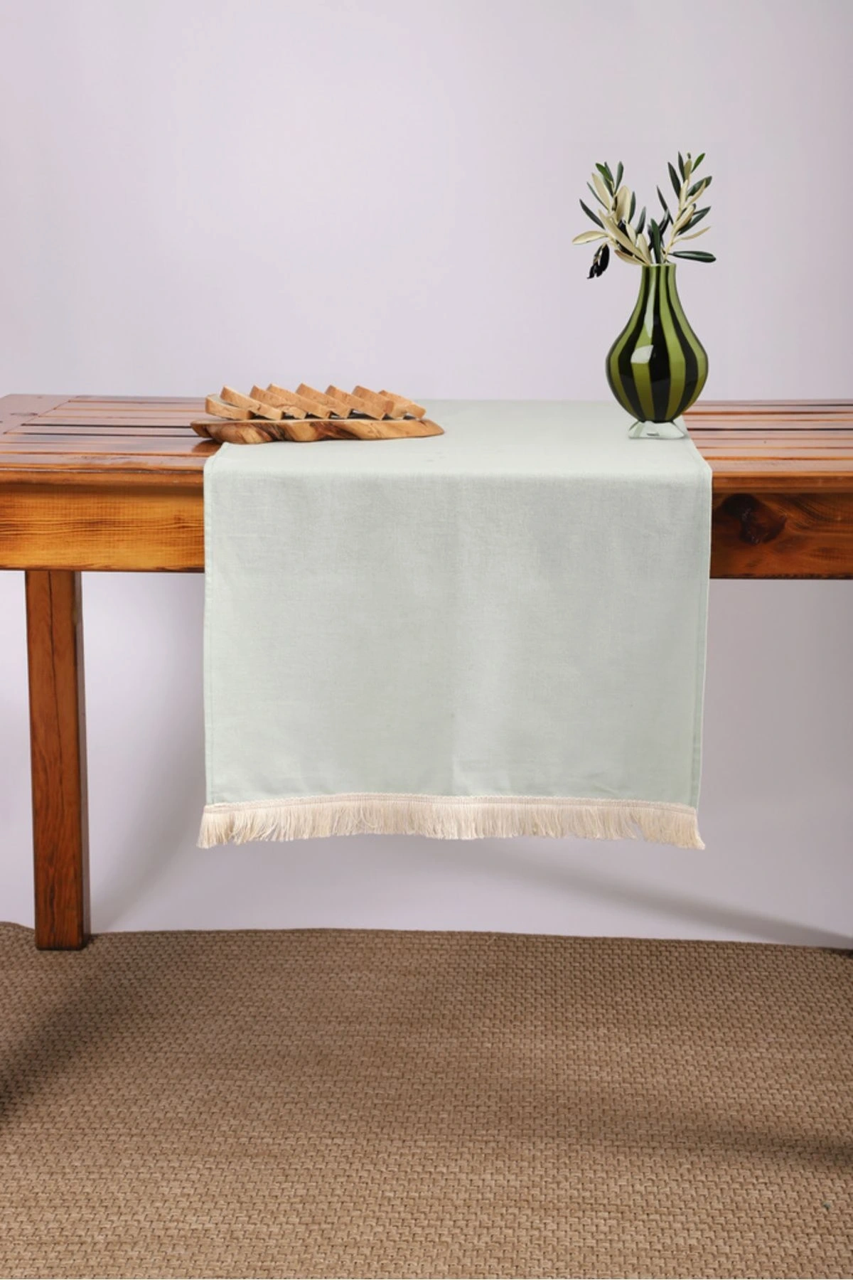 Premium Keten Adaçayı Yeşili Püsküllü Runner Masa Örtüsü(45 x150)