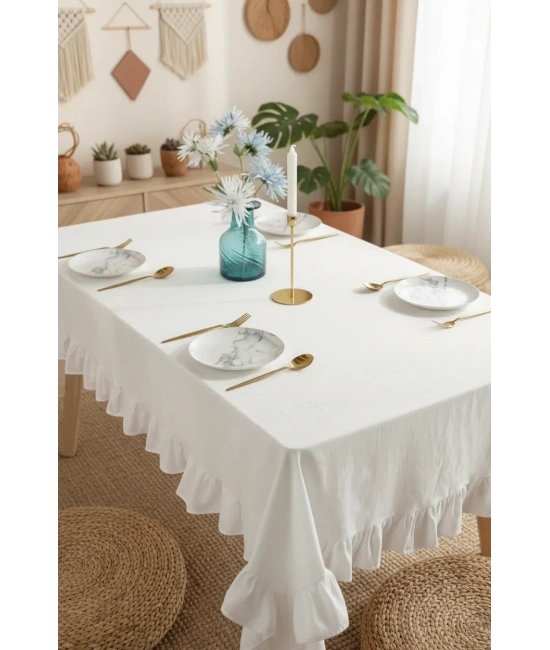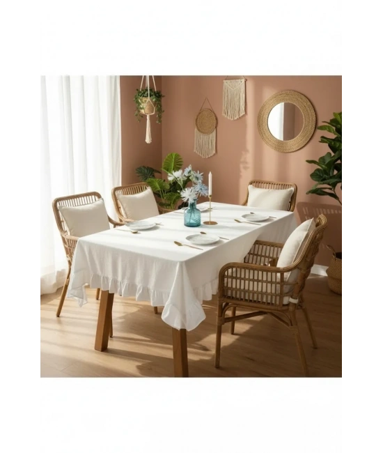 Görseldeki masa örtüsü ebatı 140 x 180 olup masa ebatı 80 x 120 dir.; Ürünlerimiz kendi imalatımız olup,doğal keten ipliğinin en doğal hali ile geneleksel eski dokuma tezgahlarında dokunmuştur.; Kenarındaki fırfır detayı kendi kumaşından yapılmıştır.; Günlük kulanım için idealdir.; Salon,Mutfak,Bahçe ve özel günlerinizde gönül rahatlığıyla kullanabilirsiniz.; Kumaş: Yıkanmış dokuma kumaş, %60 Keten %40 Pamuk Polyester, Polietilen içermez.; Keten kumaşı çabuk kuruma özelliğine sahiptir.; Dikim: Kenarları çift kat ince dikişli kumaş.; El yapımı yerli üretimdir.; Bakım talimatları: 30°C makinada kısa programda yıkama yapabilirsiniz.; Ürünü ilk yıkamada kendi kesesinde yıkama tavsiye edilir.; Leke Çıkarmak için bulaşık detarjanıyla hafif çitilemeniz yeterlidir.; Çamaşır suyu kullanılmaz.; Kurutma Makinası kullanılmaz.; Kuru temizleme yapılmaz.; Keten bitkilerin doğal yapısından kaynaklanan yıkama sonrasındaki kırışık görünüm, isteğe bağlı olarak orta ayarda ütülenerek giderilebilir.; Kumaş içerisinde Polyester vb.; dertsiz kumaş etkisi veren maddeler bulunmadığı için ağır yağ lekelerinin çıkmaması olasıdır.; Talimatlara uyulduğu takdirde renklerde solma olmayacaktır.; NOT: Işıktan Dolayı Renklerde %5 Sapma Olabilir.; *** KESİNLİKLE KURUTMA YAPMAYINIZ.; ***
