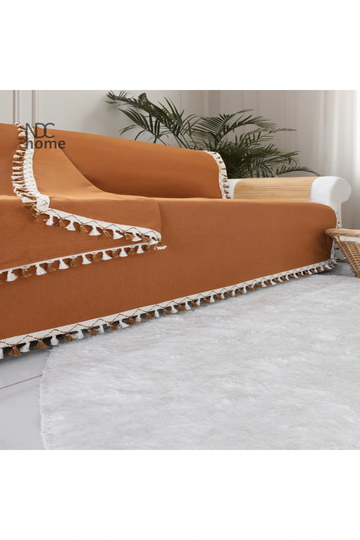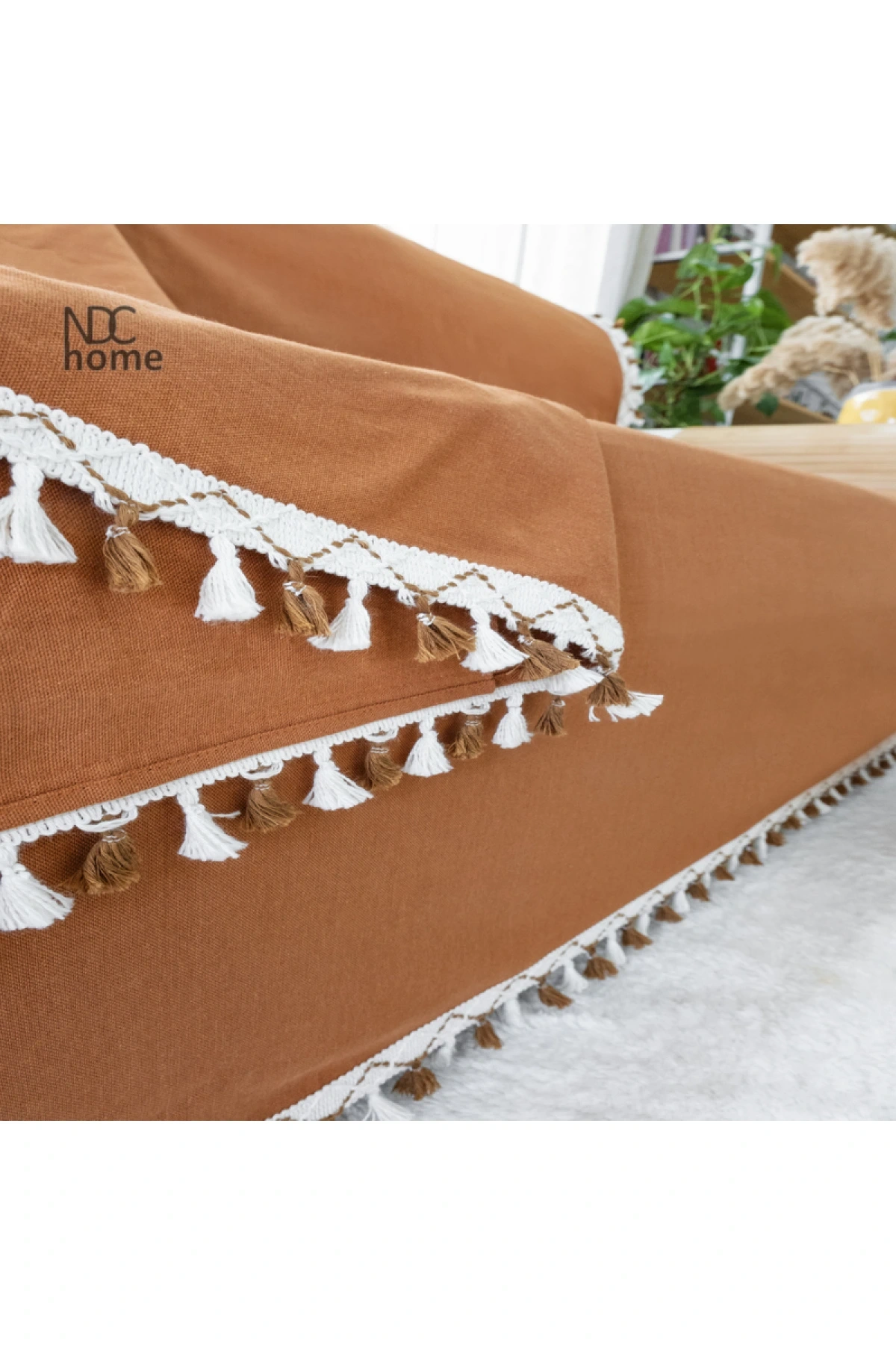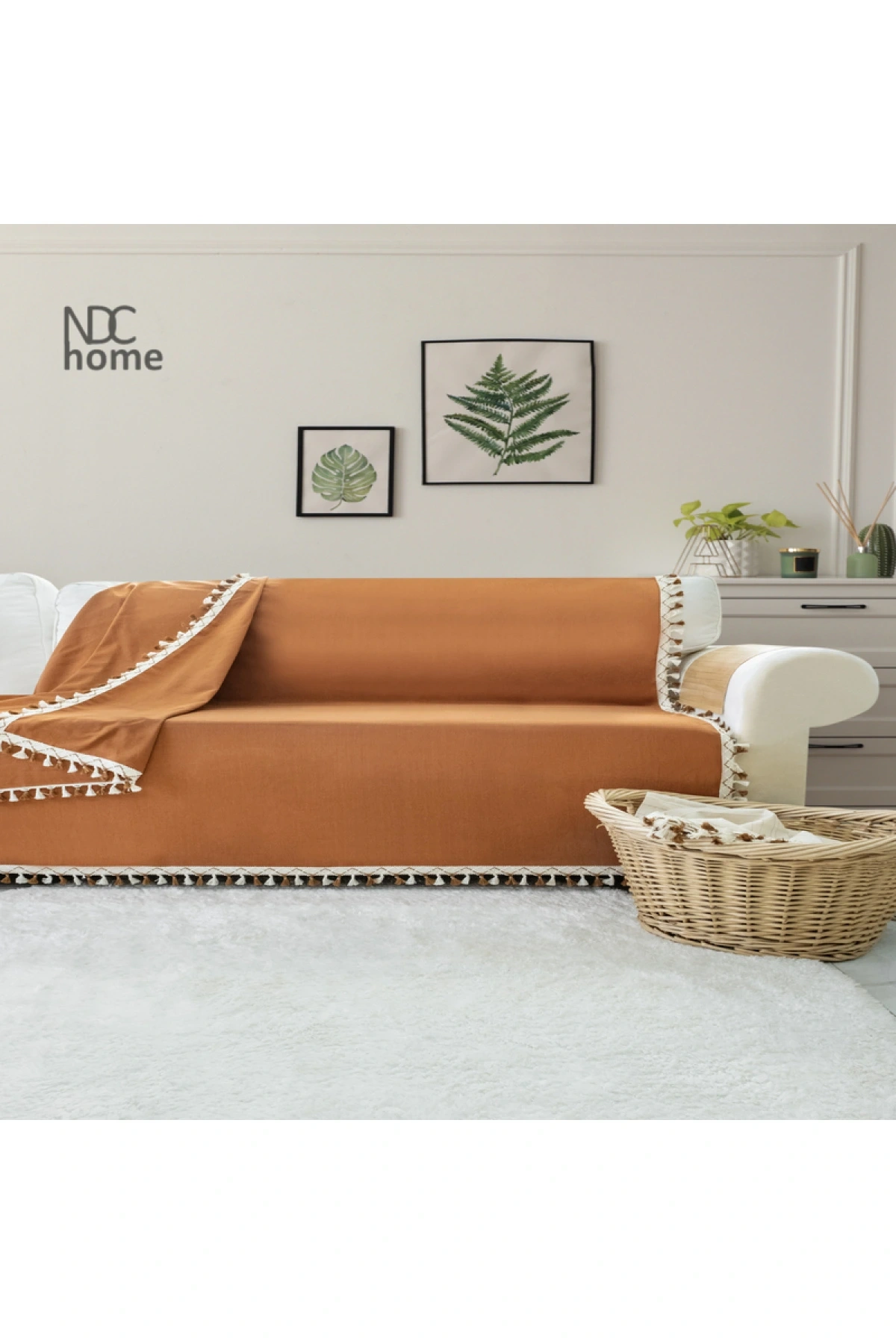 Premium Keten Tarçın [ TARÇIN] Ponponlu Koltuk Örtüsü (170 x 220