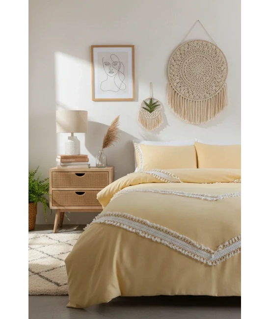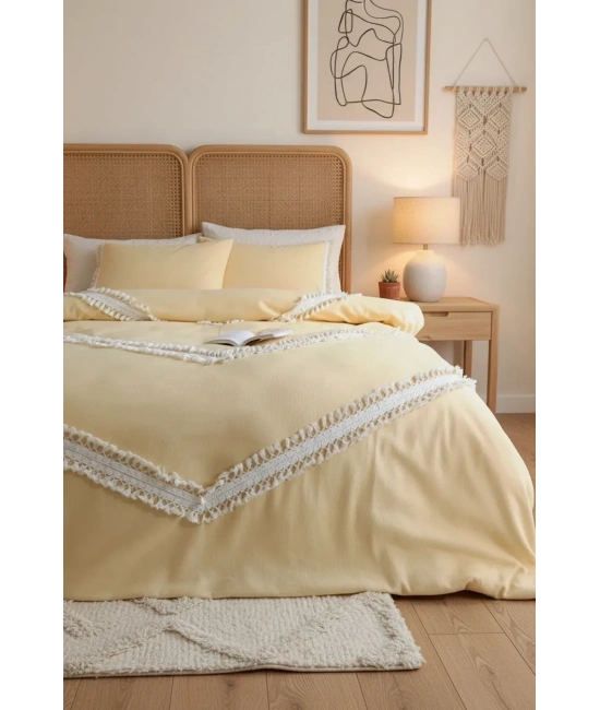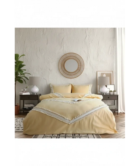 Ürünlerimiz kendi imalatımızdır. ; NDC Home Keten Nevresim yastık seti keten serisi Otantik ve modern çizgiler harmanlanarak tasarlanmıştır. ; Bu yapısıyla sofistike bir görüntüye sahiptir. ; Özel üretim tekniği ve keten dokusuyla en yüksek kalite sağlanmaya çalışılmıştır. ; NDC Home Nevresim yastık seti pamuk ve keten karışımıyla üretilmiş olup dikiş detaylarıyla kaliteli bir görünüm sunmaktadır. ; Bu karışım, yumuşaklığı ve dayanıklılığı bir arada sunarak konforlu bir uyku deneyimi sağlar. ; Kumaş içeriği: %70 Keten %30 Pamuktur. ; Terleme yapmaz. ; Kullandığımız aksesuarlar %100 pamuktur. ; Ürün içeriği 1 adet nevresim ve 2 yastık kılıfından oluşmaktadır, Ponponları bozulma ve dökülme yapmaz. ; Tercihen nevresim takımı veya karyola örtüsü olarak da kullanabilmeniz için tasarlanmış, olup yorgansızda kullanılabilir. ; İlk yıkamada kesesinde ve 30 derecede yıkamanızı tavsiye ederiz. ; Modern ve spor görünümüyle evlerinizde şık bir tarz yaratmak istedik. ; Bu Ürünün SARI ,BEJ.ANTRASİT RENGİNDE SİPARİŞ ÜZERİNE DİKİLEBİLMEKTEDİR. ; Kesinlikle çamaşır suyu ve leke çıkarıcı kullanmayınız. ; Leke oluştuğunda bulaşık detarjanıyla çitilemenizi tavsiye ederiz. ; NOT:Işıktan dolayı renklerde %5 sapma olabilir. ; (TERS ÇEVİREREK YIKAMA TAVSİYE EDİLİR.);